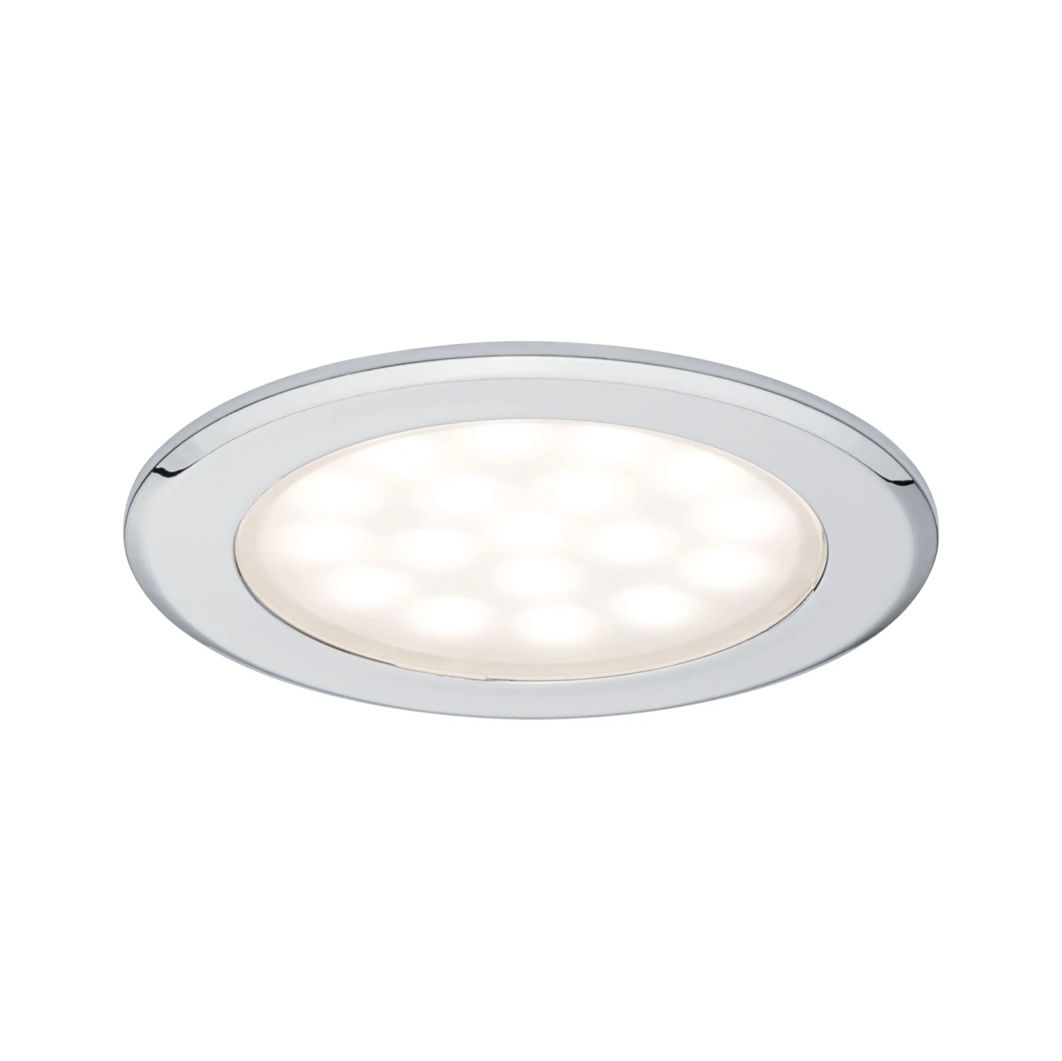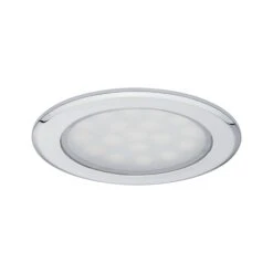 Die beiden chromfarbenen Einbaustrahler mit einem Einbaudurchmesser von 54 Millimetern eignen sich ideal, um bestehende Halogeninstallationen in Ihren Möbelstücken oder Badezimmer-Spiegelschränken auf LED umzurüsten.