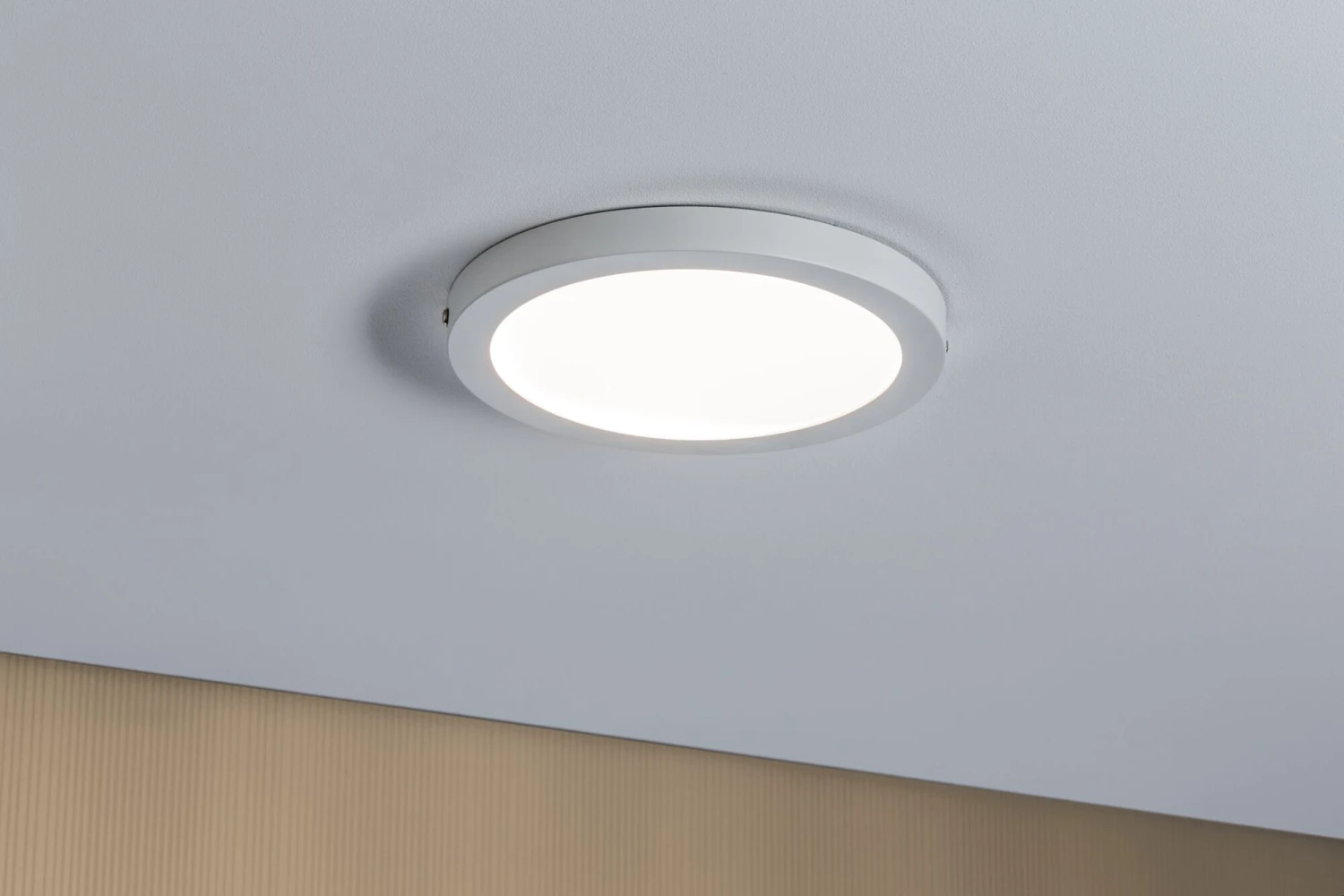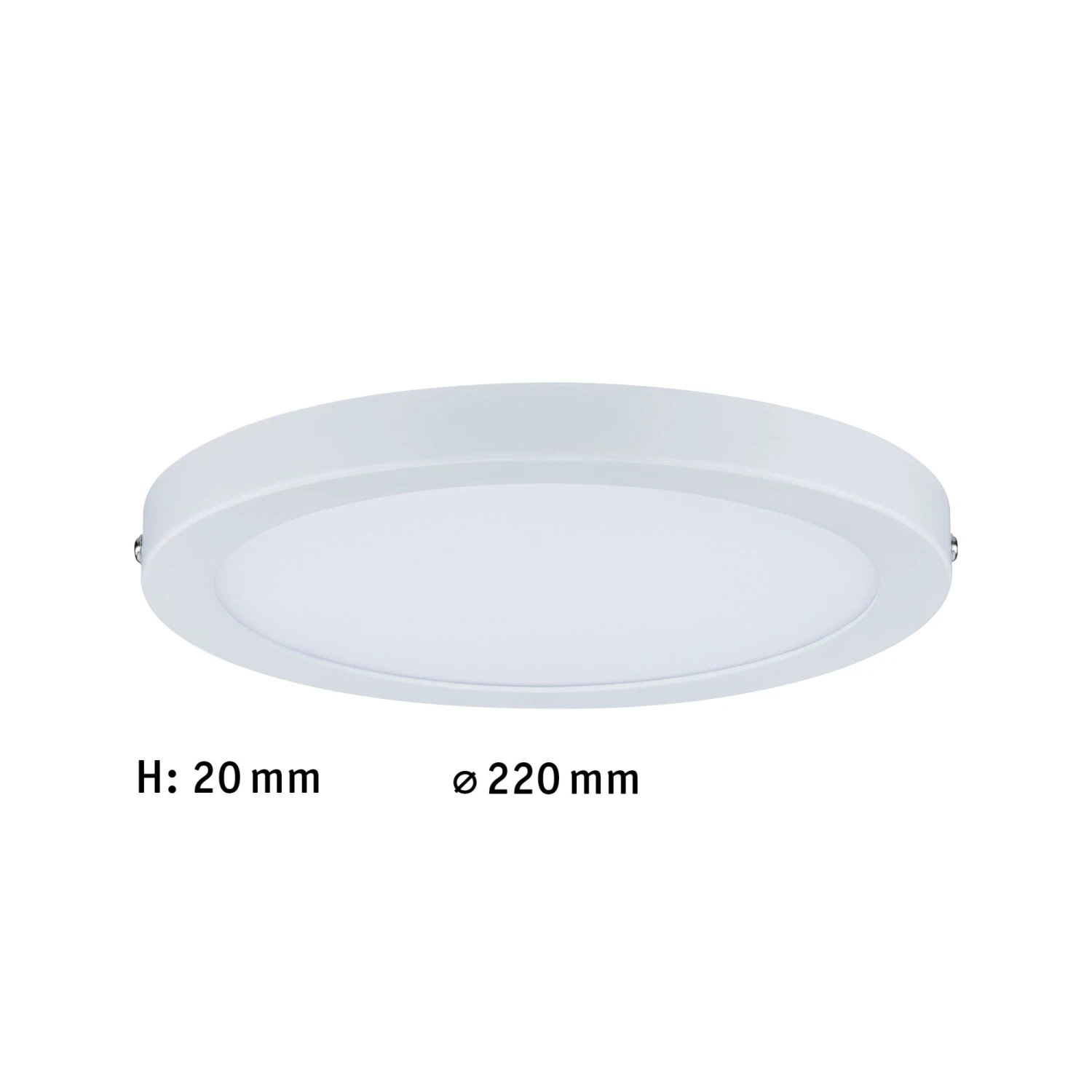 Das runde Atria Panel in Weiß matt und einer Größe von 220mm bietet eine gleichmäßige und flächige Raumausleuchtung bei neutralweißem Licht. Es ist mit 20 Millimeter Aufbauhöhe besonders flach und harmonieren mit jedem Wohnambiente. Die Leuchte aus Kunststoff lässt sich durch ihr geringes Gewicht auf nahezu allen Untergründen montieren. Zusätzlich ist sie besonders pflegeleicht.