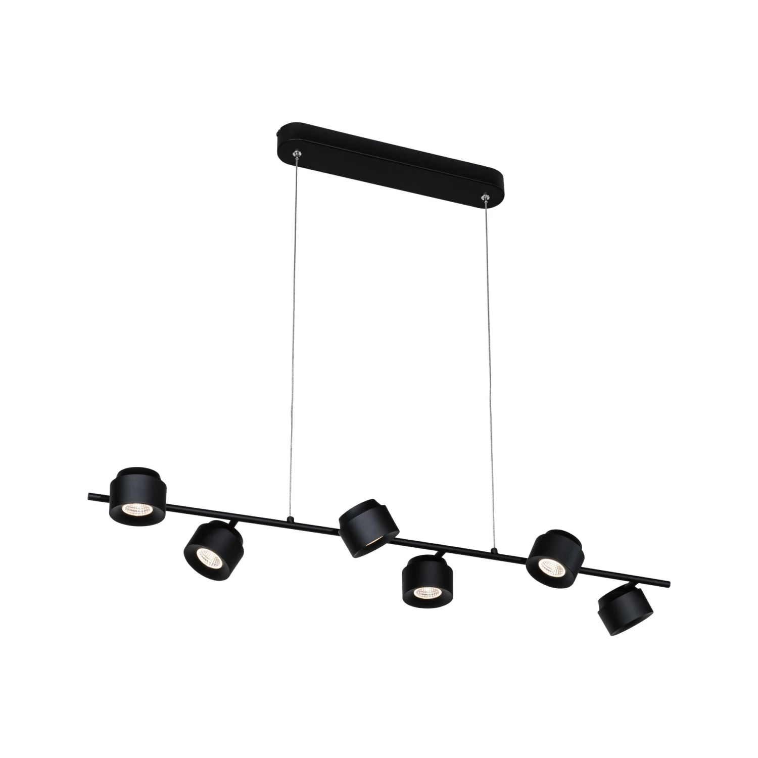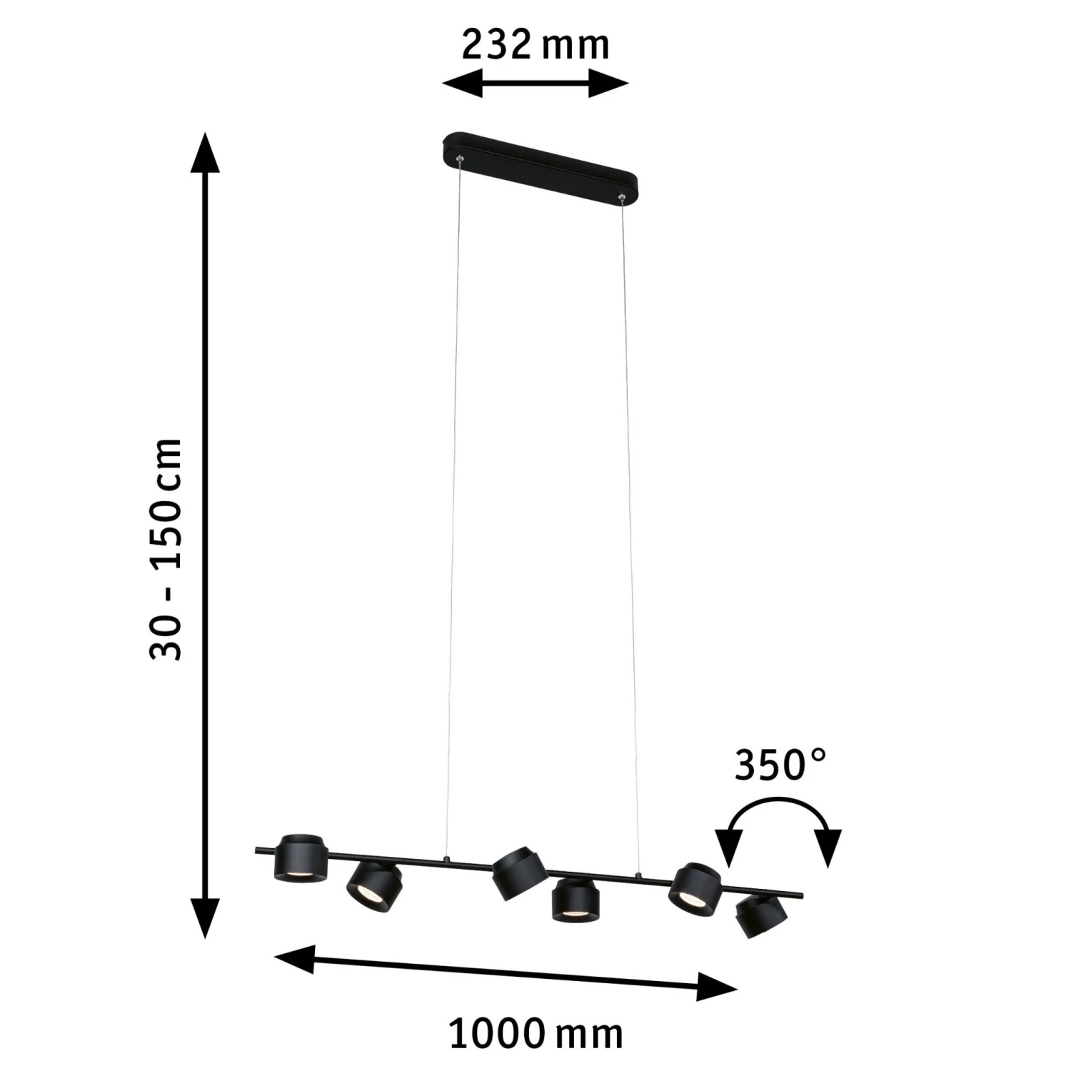 Die 6-flammige Pendelleuchte Puric Pane in Schwarz überzeugt mit ihrem modernen, reduzierten Design. Dank der besonderen Facetten-Linse ist die Leuchte besonders effizient. Einen Großteil, des auf dem LED-Chip entstehenden Lichts wird nach vorne herausgelenkt. Die individuellen, ausrichtbaren Spotköpfe und die verstellbare Pendelhöhe ermöglichen eine flexible Lichtgestaltung. Die Pendelleuchte sorgt für faszinierende Lichteffekte und ist ein optisches Highlight in jedem Raum. Per Wandschalter lässt sich die Leuchte in 3 Stufen dimmen, dies ermöglicht eine vielfältige Licht-Gestaltung.