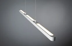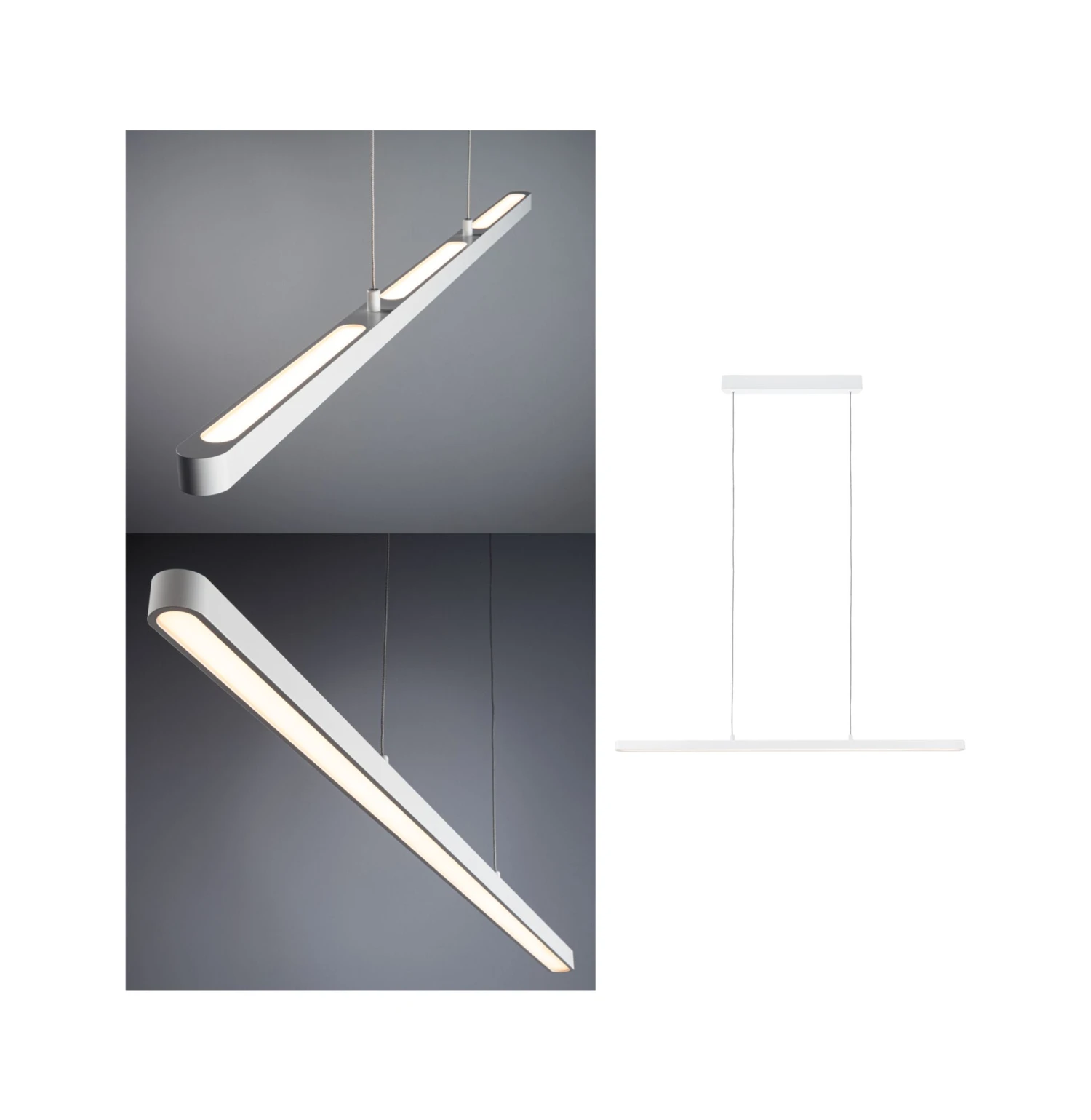 Geradlinig, modern und technisch: das ist die höhenverstellbare Pendelleuchte Lento in Weiß. Sie überzeugt durch einen hohen Lumenoutput und gibt das Licht sowohl nach oben als auch nach unten ab. Über den Wanddimmer lässt sich das Licht herunterdimmen.