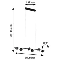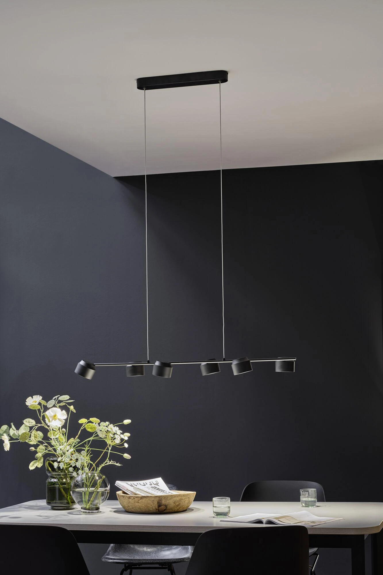 Die 6-flammige, smarte Pendelleuchte Puric Pane in Schwarz überzeugt mit ihrem modernen, reduzierten Design. Dank der besonderen Facetten-Linse ist die Leuchte besonders effizient. Einen Großteil, des auf dem LED-Chip entstehenden Lichts wird nach vorne herausgelenkt. Die individuellen, ausrichtbaren Spotköpfe und die verstellbare Pendelhöhe ermöglichen eine flexible Lichtgestaltung. Ob durch direkte oder indirekte Beleuchtung, die Pendelleuchte sorgt für faszinierende Lichteffekte und ist ein optisches Highlight in jedem Raum. Die Leuchte ist Zigbee 3.0 kompatibel. Zigbee 3.0 ist ein Funkübertragungsprotokoll, das Geräte verschiedener Hersteller miteinander vernetzt.