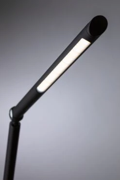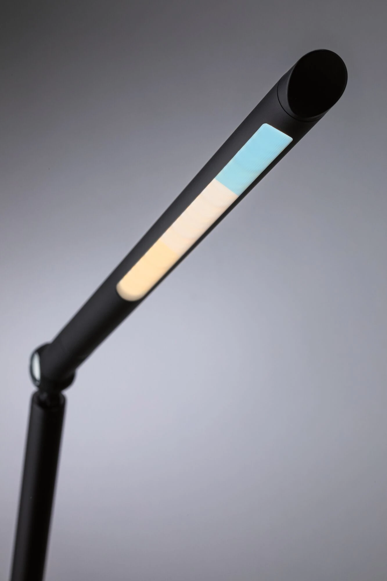 Die LED Schreibtischleuchte FlexBar in Schwarz ist durch die drei Gelenke maximal beweglich und leuchtet einen großen Bereich aus. Die Lichtfarbe lässt sich mit der Tunable White-Funktion in drei Stufen einstellen und das Licht lässt sich mit dem Touchdimmer herunterdimmen.