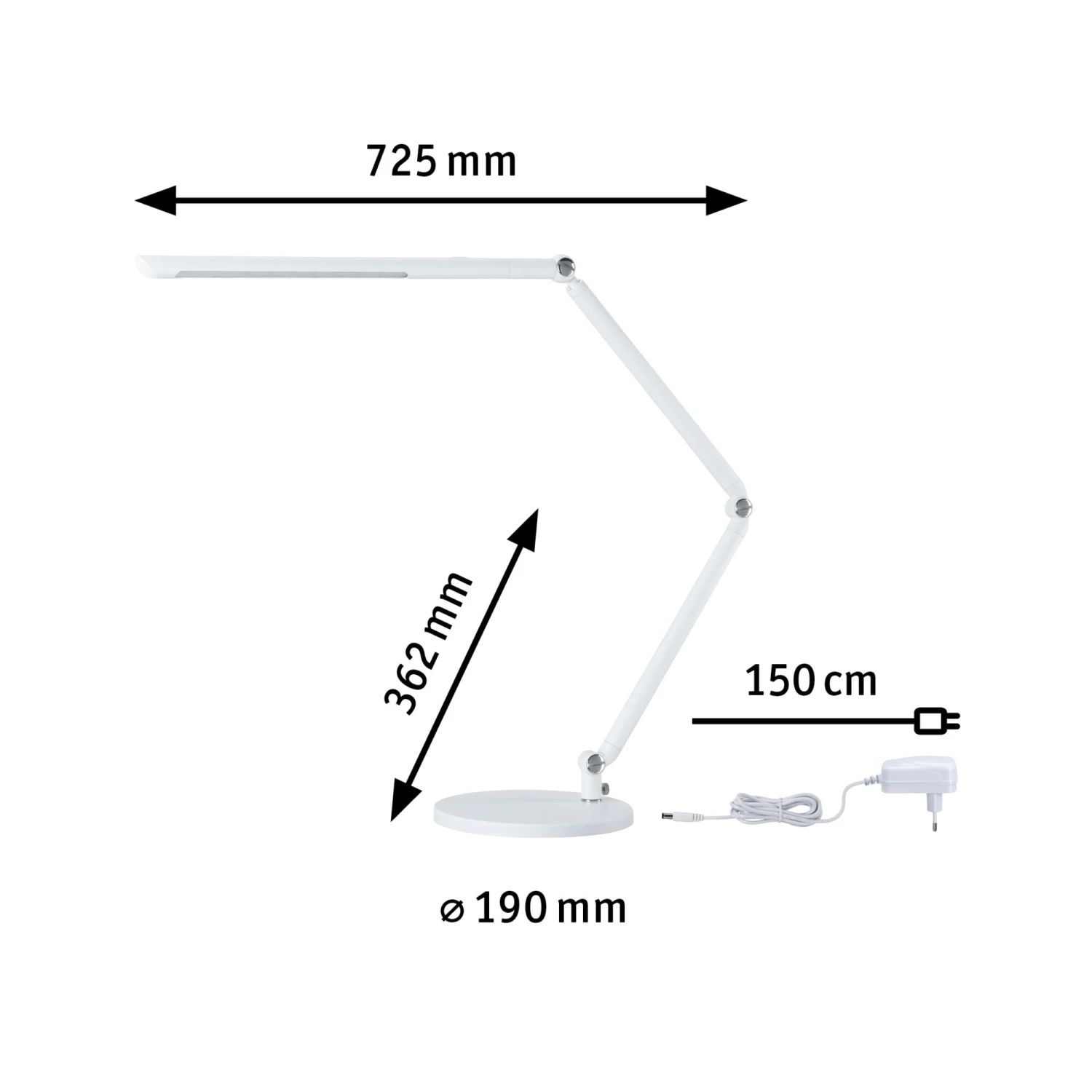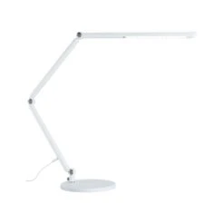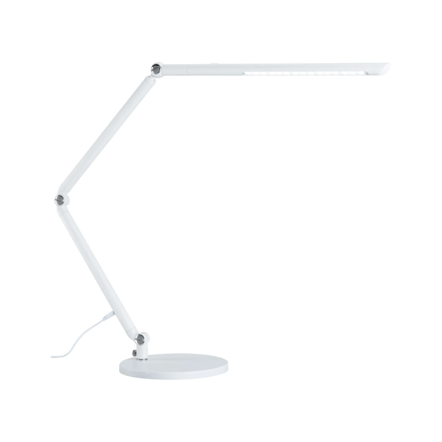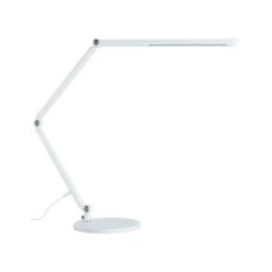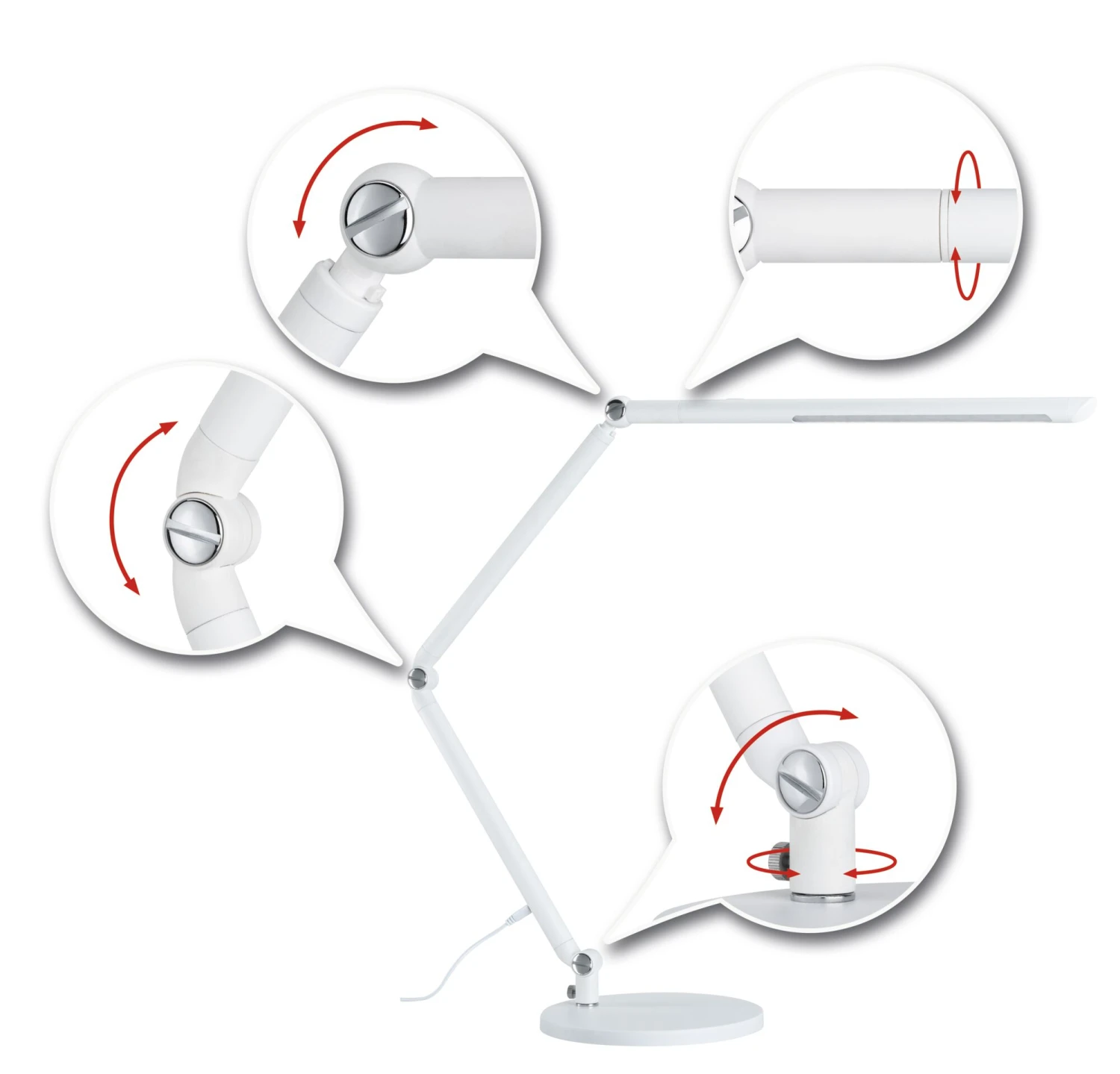Die LED Schreibtischleuchte FlexBar in Weiß ist durch die drei Gelenke maximal beweglich und leuchtet einen großen Bereich aus. Die Lichtfarbe lässt sich mit der Tunable White-Funktion in drei Stufen einstellen und das Licht lässt sich mit dem Touchdimmer herunterdimmen.