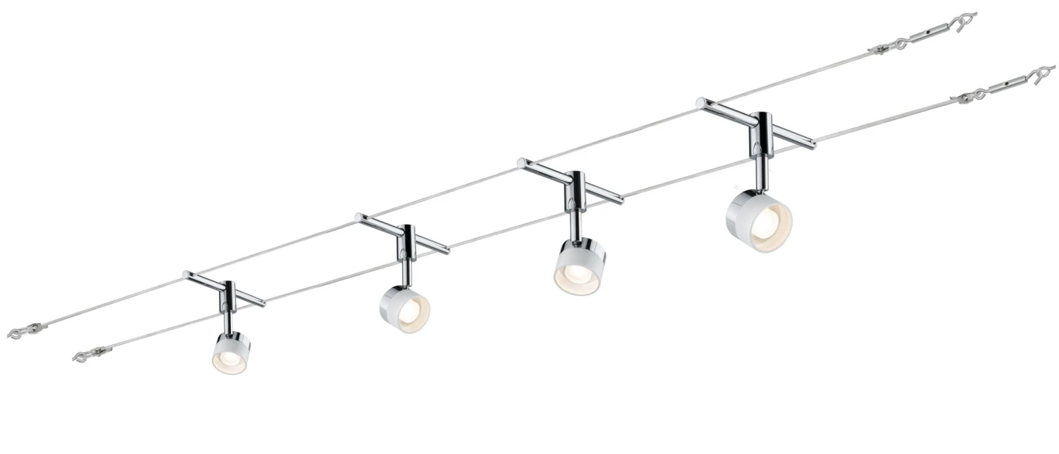 Das 4-flammige LED Seilsystem -Stage- ist mit einer Gesamtleistung von 20 Watt die Innovation in der LED-Technik. Das System ist für die Wand- und Deckenmontage geeignet und wird mit dem entsprechenden Zubehör wie z.B. Umlenker etc. zum Alleskönner in Sachen individuelle Lichtlösungen.