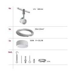 - Komplett-Set inkl. 4 Seilleuchten, 10m Seil 2,5mm², Trafo 30VA, Montageanleitung