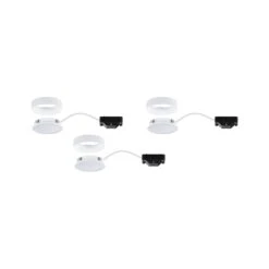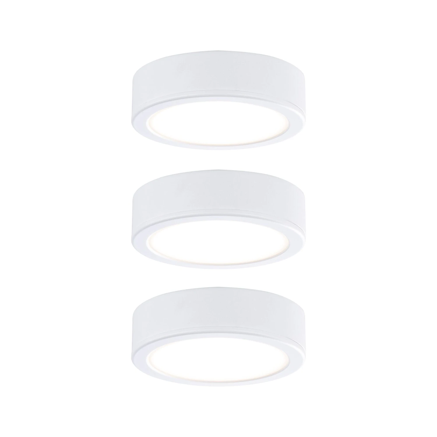 Diese weißen Möbelleuchten im 3er-Set bringen Licht in und unter Schränke, Regale und Vitrinen. Sie sorgen für den richtigen Überblick oder setzen die Sammlerstücke effektvoll in Szene. Die Leuchten werden mit Schrauben in der gewünschten Position fixiert oder einfach geklebt und die Kabel können hinter dem Möbelstück entlanggeführt und dort mit dem Vorschaltgerät verbunden werden. Zur Inbetriebnahme der Leuchten wird eine Steckdose in der Nähe des Netzteils benötigt.