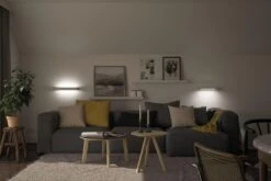 Der schwenkbare Wandfluter Lucille mit Spritzwasserschutz in Weiß mit 2700K und einer Länge von 600 mm sorgt für einzigartige Lichteffekte an der Wand. Die Leuchte setzt Bilder und Kunstwerke effektvoll in Szene. Ob im Wohnzimmer für gemütliche, indirekte Zusatzbeleuchtung, im Eingangsbereich als Eyecatcher und atmosphärisches Zonenlicht, im Wohnbereich, um Bilder anzustrahlen oder im Flur oder Badezimmer als Spiegelbeleuchtung – das moderne, geradlinige Design passt zu jedem Einrichtungsstil. Warmweißes Licht sorgt für eine angenehme Atmosphäre im Raum. Die Leuchte schafft interessante Lichteffekte und eine einzigartige Lichtatmosphäre an der Wand. Durch Schwenken der Aluminiumblende können die Lichteffekte individuell eingestellt werden. Das Ausrichten der Lichtzonen ermöglicht so eine direkte oder indirekte Beleuchtung. Mit der integrierten 3-step-dim Funktion, kann die Leuchte durch mehrmaliges Betätigen eines handelsüblichen Lichtschalters in drei Stufen gedimmt werden. Die Memory-Funktion merkt sich die zuletzt verwendete Stufe bis zum nächsten Einschalten.