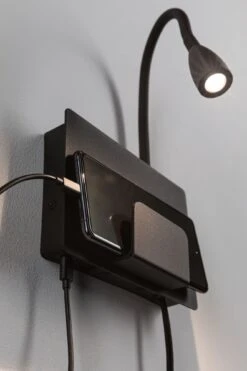 Die Wandleseleuchte Halina in Schwarz matt ist eine moderne und vielseitige Beleuchtungslösung. Mit einem schwenkbaren, flexiblen Leuchtenarm und einer fest integrierten LED bietet sie punktuelle Beleuchtung für ein optimales Leseerlebnis. Eine praktische Ablagefläche rundet das Design ab. Die seitliche USB Type-C Ladebuchse ermöglicht eine schnelle Ladung. Die steckerfertige Ausstattung mit hochwertigem Textilkabel (Länge 1,20m) macht die Platzierung an der Wand unkompliziert und einfach. Das Textilkabel ist abnehmbar und erlaubt den direkten Anschluss an den Stromauslass. Die Halina Wandleseleuchte eignet sich ideal für das Schlafzimmer, die Leseecke oder jeden anderen Raum, der eine angenehme Atmosphäre benötigt. Sie ist universell einsetzbar und verleiht jedem Raum das gewisse Extra.