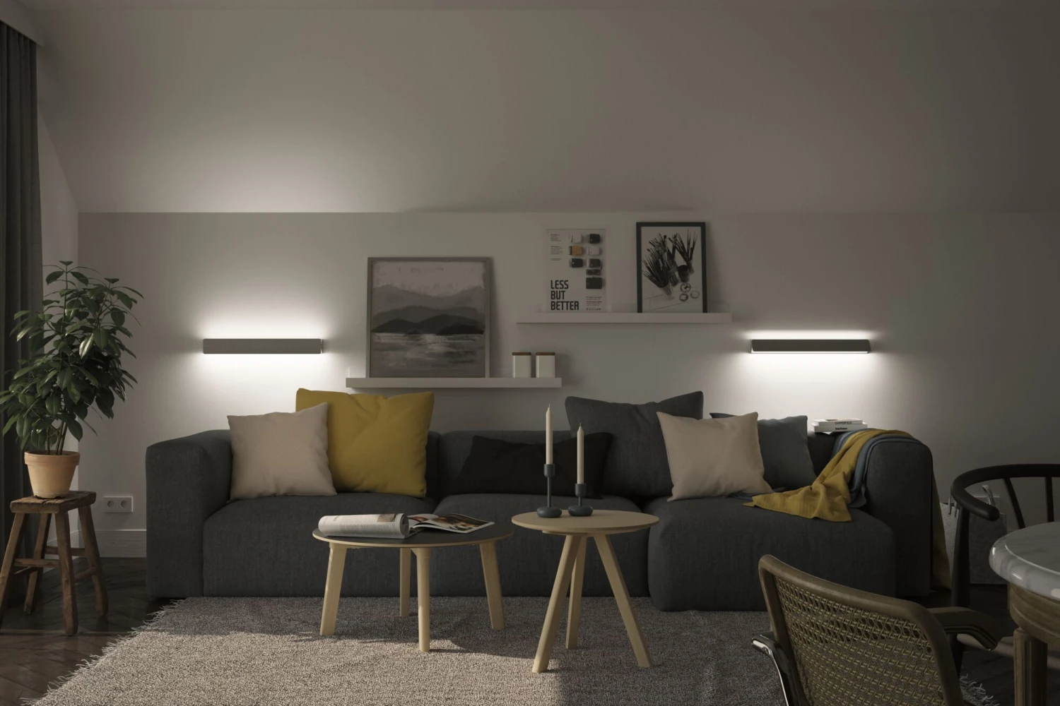 Der schwenkbare Wandfluter Katla in Alu gebürstet mit 2700K und einer Länge von 610 mm sorgt für einzigartige Lichteffekte an der Wand. Die Leuchte setzt Bilder und Kunstwerke effektvoll in Szene. Ob im Wohnzimmer für gemütliche, indirekte Zusatzbeleuchtung, im Eingangsbereich als Eyecatcher und atmosphärisches Zonenlicht, im Wohnbereich, um Bilder anzustrahlen oder im Flur als Spiegelbeleuchtung – das moderne, geradlinige Design passt zu jedem Einrichtungsstil. Warmweißes Licht sorgt für eine angenehme Atmosphäre im Raum. Die Leuchte schafft interessante Lichteffekte und eine einzigartige Lichtatmosphäre an der Wand. Durch Schwenken der Aluminiumblende können die Lichteffekte individuell eingestellt werden. Das Ausrichten der Lichtzonen ermöglicht so eine direkte oder indirekte Beleuchtung.