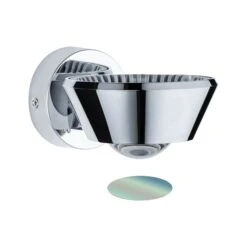 Die dimmbare Wandleuchte Sabik in der Farbe Chrom gibt ihr Licht nach oben und unten ab. Dank IP44-Spritzwasserschutz ist die Leuchte auch im Bad einsetzbar. Auf die Glaslinse im unteren Bereich lässt sich mithilfe eines Sprengrings eine dichroitische Folie aufbringen, die für besondere Lichtakzente sorgt. Die Spektraleffekt-Folie erzeugt eine zauberhafte Regenbogen-Aura. Durch Lichtbrechung entsteht ein irisierender Farbeffekt aus den Spektralfarben, der besonders gut zur Geltung kommt, wenn das Licht zum Beispiel eine weiße Wand streift. Die eigentliche Lichtfarbe bleibt dabei weiß, sodass der Artikel für alle Beleuchtungsaufgaben geeignet ist.