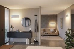 Im Wohnzimmer für eine gemütliche und indirekte Zusatzbeleuchtung im Eingangsbereich als Eyecatcher und atmosphärisches Zonenlicht oder im Wohnbereich, um Bilder anzustrahlen. Die dimmbare Wandaufbauleuchte Stine in Weiß matt mit einer Länge von 55 cm setzt mit ihren dekorativen Lichteffekten die Wand besonders in Szene. Dank des modernen Designs passt die Leuchte zu den verschiedensten Einrichtungsstilen. Die Lichteffekte können individuell durch Schwenken der Blende eingestellt werden. Das Licht strahlt dank strukturierter Diffusorscheibe gleichmäßig nach oben und unten. Per Sprachsteuerung, Fernbedienung oder App kann die Wandleuchte smart gesteuert werden. Dank der integrierten Tunable White Funktion lässt sich die Lichtfarbe nach Bedarf einstellen: von tageslichtweißem Arbeitslicht bis hin zu warmweißer Entspannungsbeleuchtung. Die Leuchte ist Zigbee 3.0 kompatibel. Zigbee 3.0 ist ein Funkübertragungsprotokoll, das Geräte verschiedener Hersteller miteinander vernetzt.