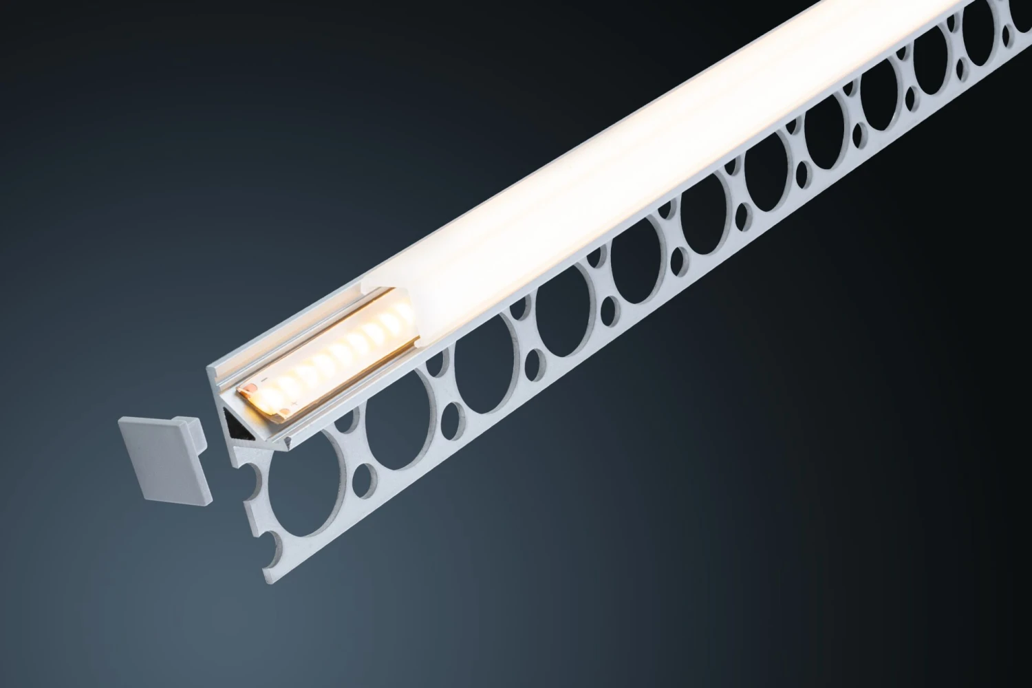 - Inklusive innenliegende Endkappe zur Abdichtung des Profils