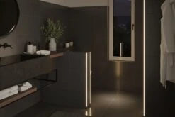 Der 2m-lange COB Slim Strip mit nur 8 mm Breite wurde speziell für das Frame Profil entwickelt. Er erzeugt einen beeindruckenden linearen Lichteffekt am Diffusor. Ausgeschaltet ist er nicht sichtbar. Der Strip mit einer warmweißen Lichtfarbe wird über den Anschluss am Lichtschalter Ein/Aus geschaltet. Der Stripe kann alle 25 mm gekürzt werden. Die kleinstufige Kürzbarkeit des Stripes ermöglicht ein passgenaues Lichtbild im Profil ohne Schattenbildung.