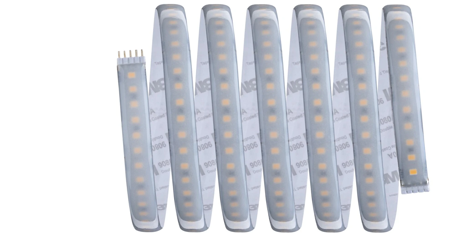 Dieser warmweiße MaxLED 1000 Strip mit einer Länge von 2,5 m, lässt sich durch die IP44-Beschichtung „Protecting Cover“ auch in Feuchträumen verwenden. Er ist die perfekte Ergänzung zum Basisset. Mit 29 Watt sind die MaxLED Strips so leistungsstark, dass sie problemlos zur Raumausleuchtung eingesetzt werden können. Besonders in Profilen sind sie echte Highlights. Die Strips haben 144 LEDs pro 1 Meter und lassen sich alle 41,5 cm kürzen.