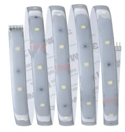 Dieses MaxLED 250 Basisset enthält neben dem Streifen in der Länge von 1,5m auch ein passendes Vorschaltgerät. Es lässt sich nach Bedarf um eine Steuerungseinheit mit Fernbedienung erweitern. Dank der neuartigen IP44-Beschichtung „Protecting Cover“, lässt sich das Basisset auch in Feuchträumen verwenden. Die MaxLED Strips sind mit 6 Watt so leistungsstark, dass sie problemlos zur Raumausleuchtung eingesetzt werden können. Besonders in Profilen sind sie echte Highlights. Tageslichtweiße Strips sorgen für aktivierendes und konzentrationsförderndes Raum- und Nutzlicht.