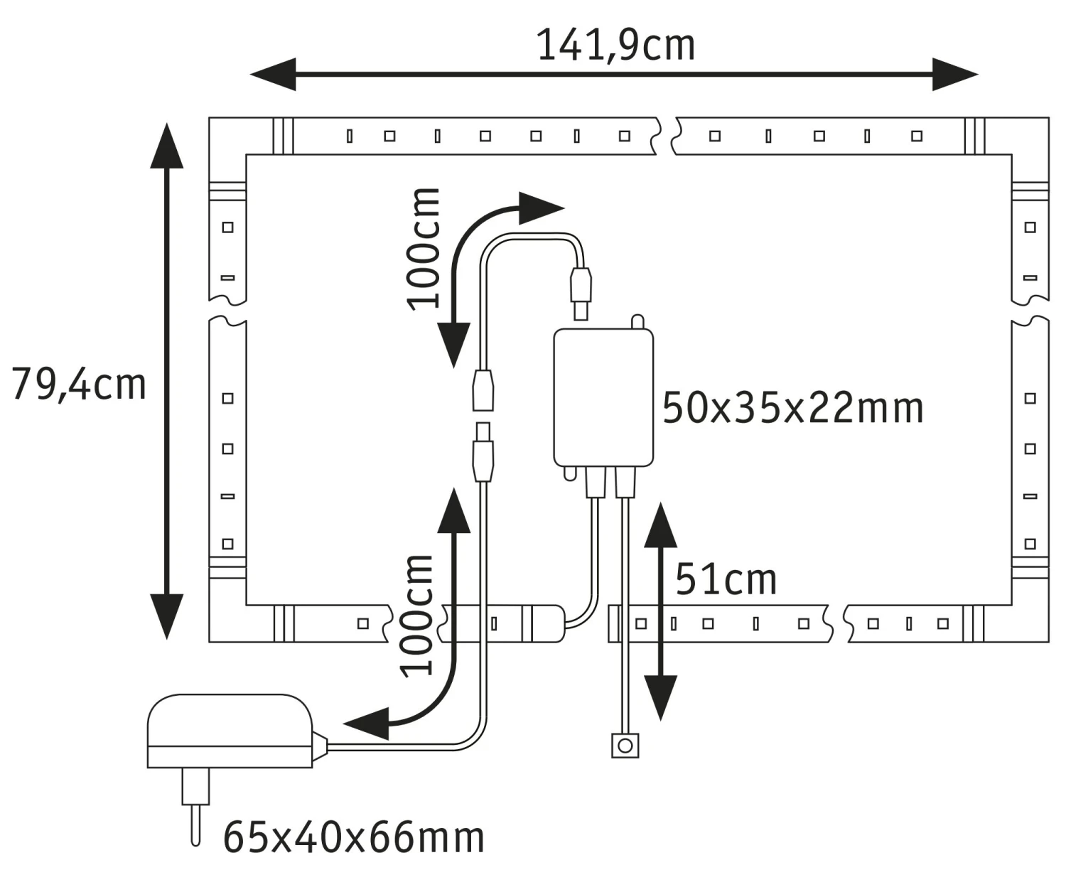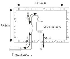 Spektakuläre Lichteffekte im Wohnraum, das MaxLED 250 TV-Comfort-Set RGBW mit Power Supply, LED-Stripes und Fernbedienung sorgt für eine indirekte Beleuchtung hinter dem Fernseher. Die komfortable Steuerung ermöglicht kinderleicht die direkte Farbwahl oder die Einstellung eines angenehmen gemütlichen Lichts durch die zusätzliche warmweiße LED. Praktisch: Durch die eigene Stromversorgung kann auch das Licht auch unabhängig vom TV eingeschaltet werden. Das Set ist mit seinen Stripe-Abschnitten und den 4 filigranen Ecken speziell auf einen 65 Zoll TV ausgelegt. Flexibel für jede Gehäuse-Form: Die extra lange Zuleitung und die Möglichkeit an allen 4 Ecken oder zwischen den einzelnen Stripes einzuspeisen, ermöglichen eine komfortable Verlegung am Rand der TV-Rückseite. Dank Kleberücken und Stecksystem ist die Montage sehr leicht und werkzeuglos durchzuführen.