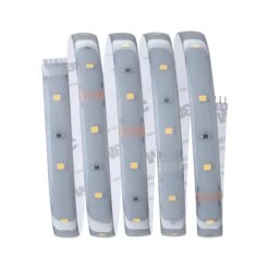 Dieses MaxLED 250 Basisset enthält neben dem Streifen in der Länge von 1,5m auch ein passendes Vorschaltgerät. Es lässt sich nach Bedarf um eine Steuerungseinheit mit Fernbedienung erweitern. Dank der neuartigen IP44-Beschichtung „Protecting Cover“, lässt sich das Basisset auch in Feuchträumen verwenden. Die MaxLED Strips sind mit 6 Watt so leistungsstark, dass sie problemlos zur Raumausleuchtung eingesetzt werden können. Besonders in Profilen sind sie echte Highlights. Warmweiße Strips sorgen für gemütliches und entspannendes Raum- und Nutzlicht.