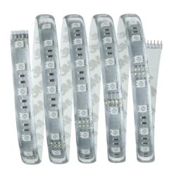 MaxLED-Strips sind mit 20 Watt so leistungsstark, dass sie problemlos zur Raumausleuchtung eingesetzt werden können. Besonders in Profilen sind sie echte Highlights. Dank der stimmungsvollen Farbwechselfunktion schaffen Sie ein individuelles Wohnambiente – von einfarbiger Dauerbeleuchtung bis hin zu mehrfarbigen Lichteffekten ist alles möglich. Aus den Farben Rot, Grün und Blau (RGB) können unterschiedlichste Farbmischungen erzeugt werden. Das Basisset enthält neben dem Streifen ein passendes Vorschaltgerät und eine Steuerungseinheit mit Infrarotfernbedienung. Es lässt sich nach Bedarf mit zusätzlichen Strips und Verbindern erweitern. Bitte beachten Sie bei der Planung die unten angegebene Maximallänge, die nicht überschritten werden darf.