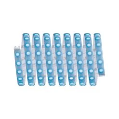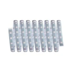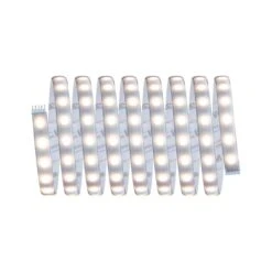 MaxLED-Strips 500 sind mit 36W und 440lm/m so leistungsstark, dass sie problemlos zur Raumausleuchtung eingesetzt werden können. Besonders in Profilen sind sie echte Highlights. Dank der stimmungsvollen Farbwechselfunktion schaffen Sie ein individuelles Wohnambiente – von einfarbiger Dauerbeleuchtung bis hin zu mehrfarbigen Lichteffekten ist alles möglich. Eine Diode in Weiß (W) sorgt zusätzlich für wohnliches warmweißes Licht und macht das Mischen eines Weißtons aus den Farben Rot, Grün und Blau (RGB) überflüssig. Das Basisset enthält neben dem Streifen mit einer Länge von 3m ein passendes Vorschaltgerät und eine Steuerungseinheit mit Infrarotfernbedienung. Es lässt sich nach Bedarf mit zusätzlichen Strips und Verbindern erweitern. Bei der Planung darf die unten angegebene Maximallänge nicht überschritten werden. Mit IP44-Schutz ist der Strip speziell gegen das Eindringen von Spritzwasser und deshalb ideal für den Einsatz in Feuchträumen geeignet.