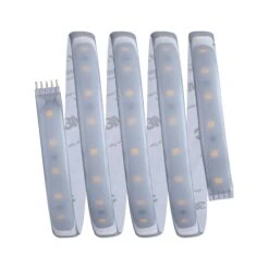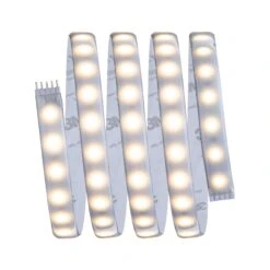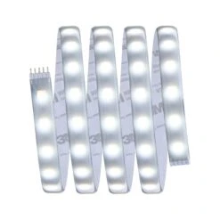 MaxLED-Strips 500 sind mit 10W und 470lm/m so leistungsstark, dass sie problemlos zur Raumausleuchtung eingesetzt werden können. Besonders in Profilen sind sie echte Highlights. Dank der intelligenten Weißlichtsteuerung Tunable White lässt sich die Lichtfarbe der Strips individuell variieren – von tageslichweißem Arbeitslicht bis hin zu warmweißer Entspannungsbeleuchtung ist alles möglich. Das Basisset enthält neben dem Streifen mit einer Länge von 1,5m ein passendes Vorschaltgerät und eine Steuerungseinheit mit Infrarotfernbedienung. Es lässt sich nach Bedarf mit zusätzlichen Strips und Verbindern erweitern. Bei der Planung darf die unten angegebene Maximallänge nicht überschritten werden. Mit IP44-Schutz ist der Strip speziell gegen das Eindringen von Spritzwasser und deshalb ideal für den Einsatz in Feuchträumen geeignet.