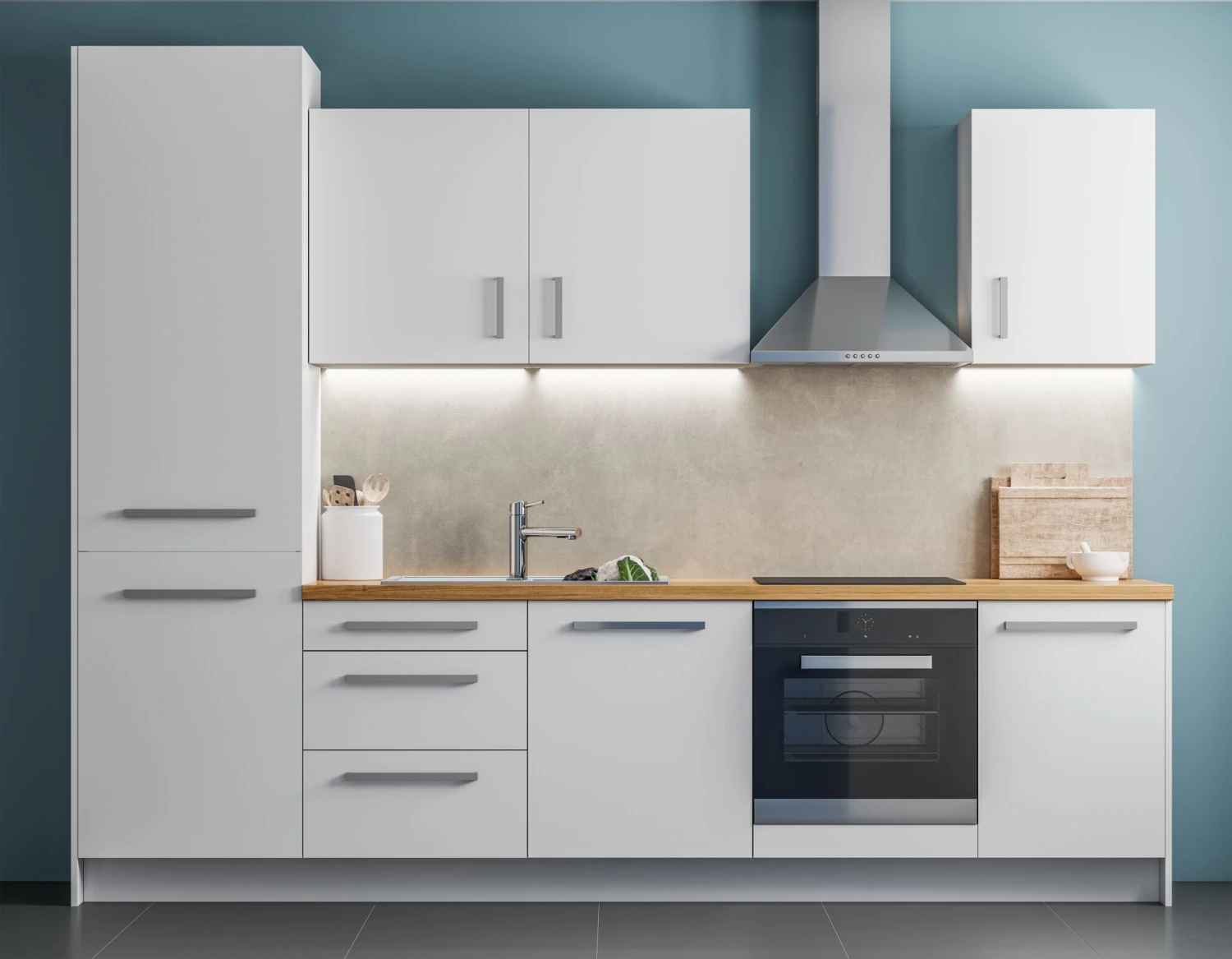 Das Set liefert perfektes Arbeitslicht unter dem Küchenschrank. Die drei beschichteten Stripes sind für 3 Hängeschränke mit 60 cm ausgelegt. Falls das nicht passt, können die Stripes alle 8 cm gekürzt oder mit zusätzlichem Stripe bis zu 3 m erweitert werden. Das Set ist mit langer Zuleitung ausgestattet und zwei zusätzliche Kabel ermöglichen das Verlegen hinter einer Dunstabzugshaube. Mit dem filigranen Touch Schalter inkl. Dimmer kann das Licht direkt am Unterschrank ein- & ausgeschaltet werden. Das edle Metallgehäuse des Schalters reagiert auf einfache Berührungen mit On/Off und bei längerem gedrückt halten mit einem stufenlosem dimmen.