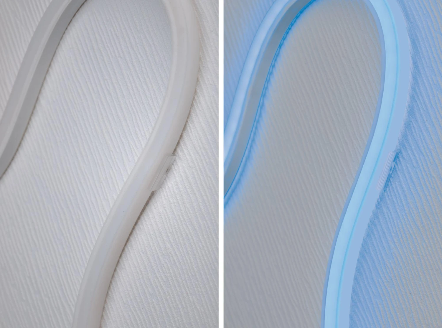 Dezent, homogen & lichtstark! Der MaxLED Flow Strip RGB 5m spendet mit einer Leistung von 43W flächiges Licht ohne sichtbare LED-Punkte. Er ist in einem flexiblen Profil mit großem, effektvollen Ausstrahlwinkel vergossen und kann sowohl in geschwungenen Linien als auch in geraden Strecken verlegt werden. Zur Befestigung sind transparente, kaum sichtbare Halteclips, Schrauben und Dübel im Set enthalten. Dank IP67 Schutz eignet sich der filigrane Stripe auch für Feuchträume und bringt Licht in jedes Wellnessbad.