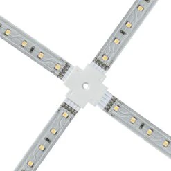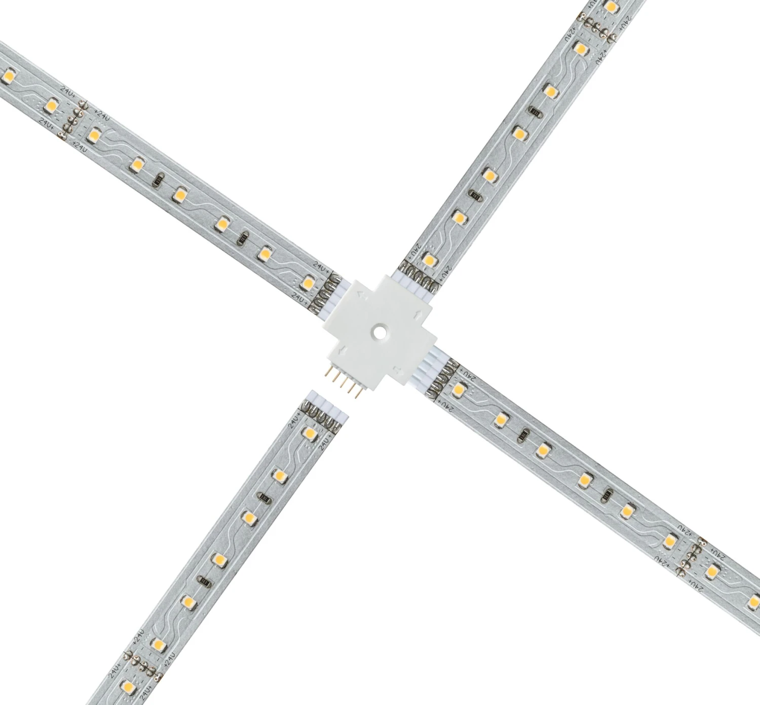 Das MaxLED-System lässt sich mithilfe von Verbindern perfekt an räumliche Besonderheiten wie Ecken oder Stufen anpassen oder verzweigen. Der X-Connector bietet 4 Anschlussmöglichkeiten und ist ganz einfach durch eine Mittelpunktschraube oder ein Klebepad zu befestigen.