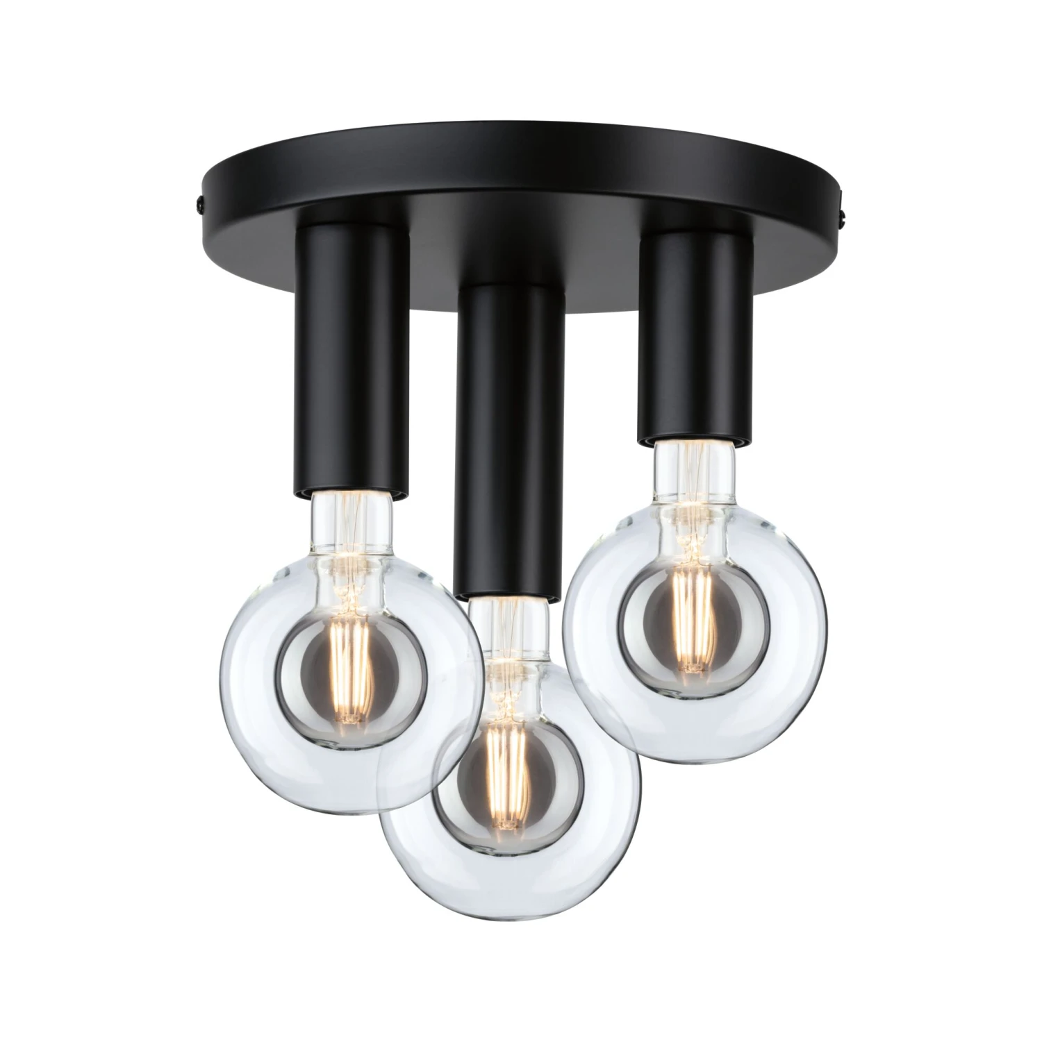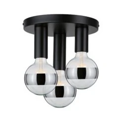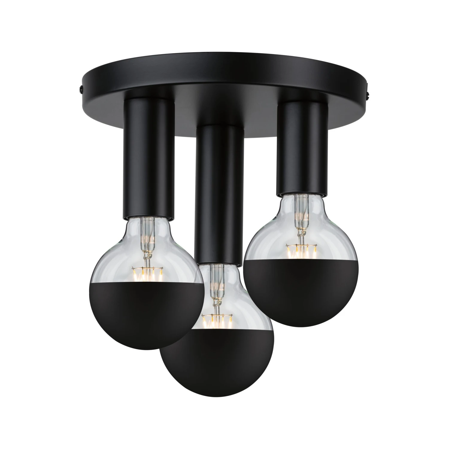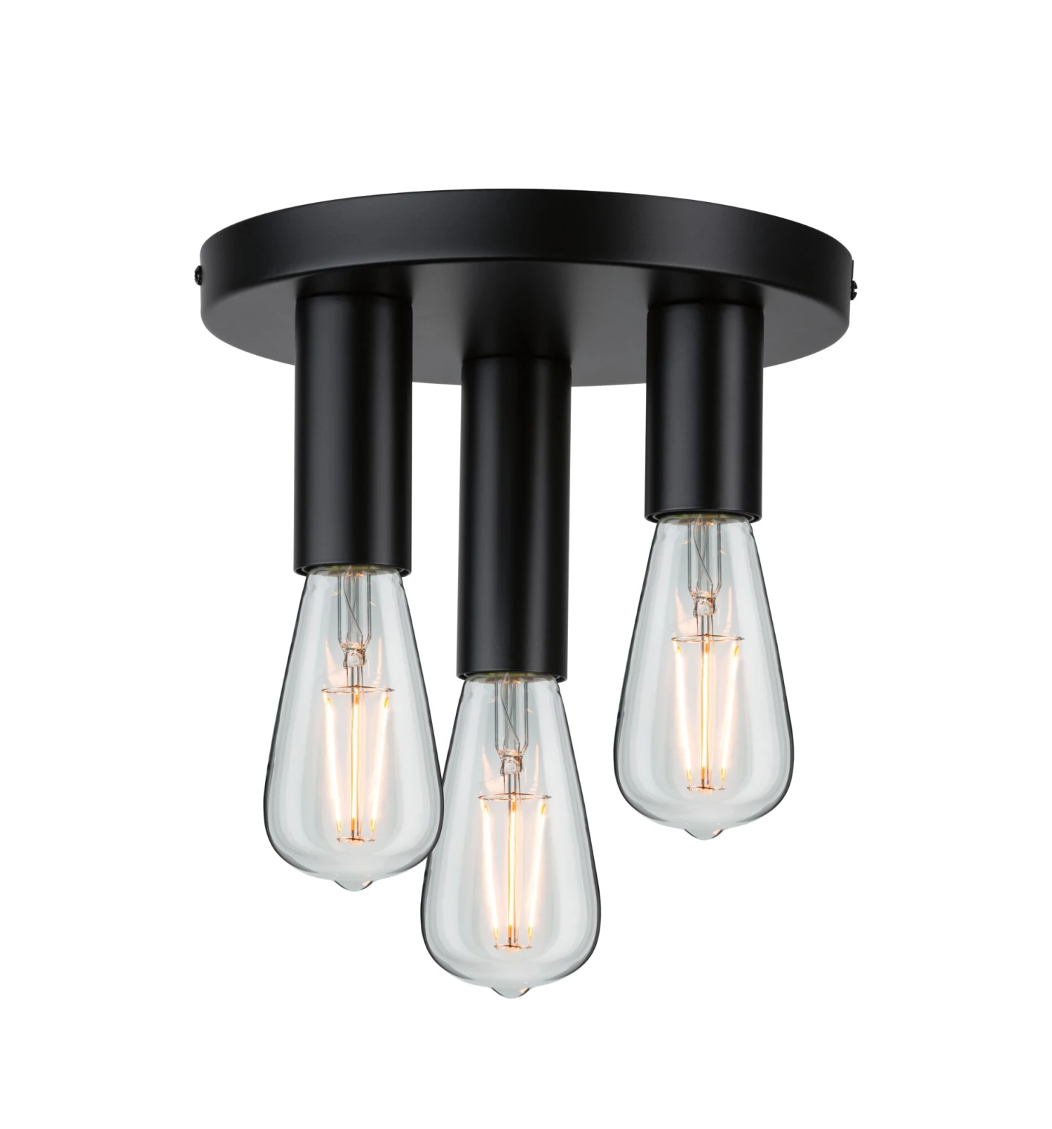 Die Deckenleuchte Skogen im reduzierten, schwarzen Design ist ein echter Hingucker und passt zu allen dekorativen Leuchtmitteln mit E27 Sockel. Besonders schön sind Kopf- oder Ringspiegellampen sowie Leuchtmittel in trendigem Rauchglas.