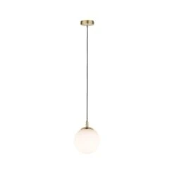 Trendiger Materialmix aus satiniertem Glas und gebürstetem Messing: die Pendelleuchte Menja steht für wohnliches Licht im Jungle Look. Setzen Sie spielend leicht Lichtakzente in allen Räumen. Durch Kombination mit anderen Serien schaffen Sie ein individuelles Wohnambiente.