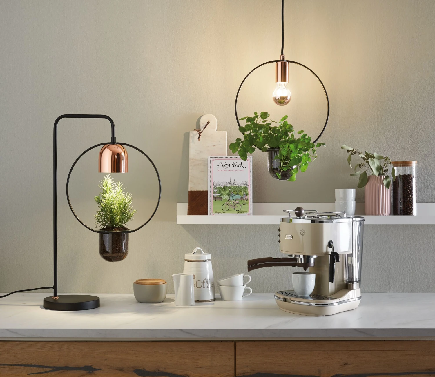 Grüner wird’s nicht: Durch die Kombination mit einer Zimmerpflanze, wird die Tischleuchte Fanja zum Inbegriff des Urban Jungle-Trends. Je nach Pflanzenart, kann ein dekoratives Leuchtmittel oder ein Spezial-Leuchtmittel eingesetzt werden.