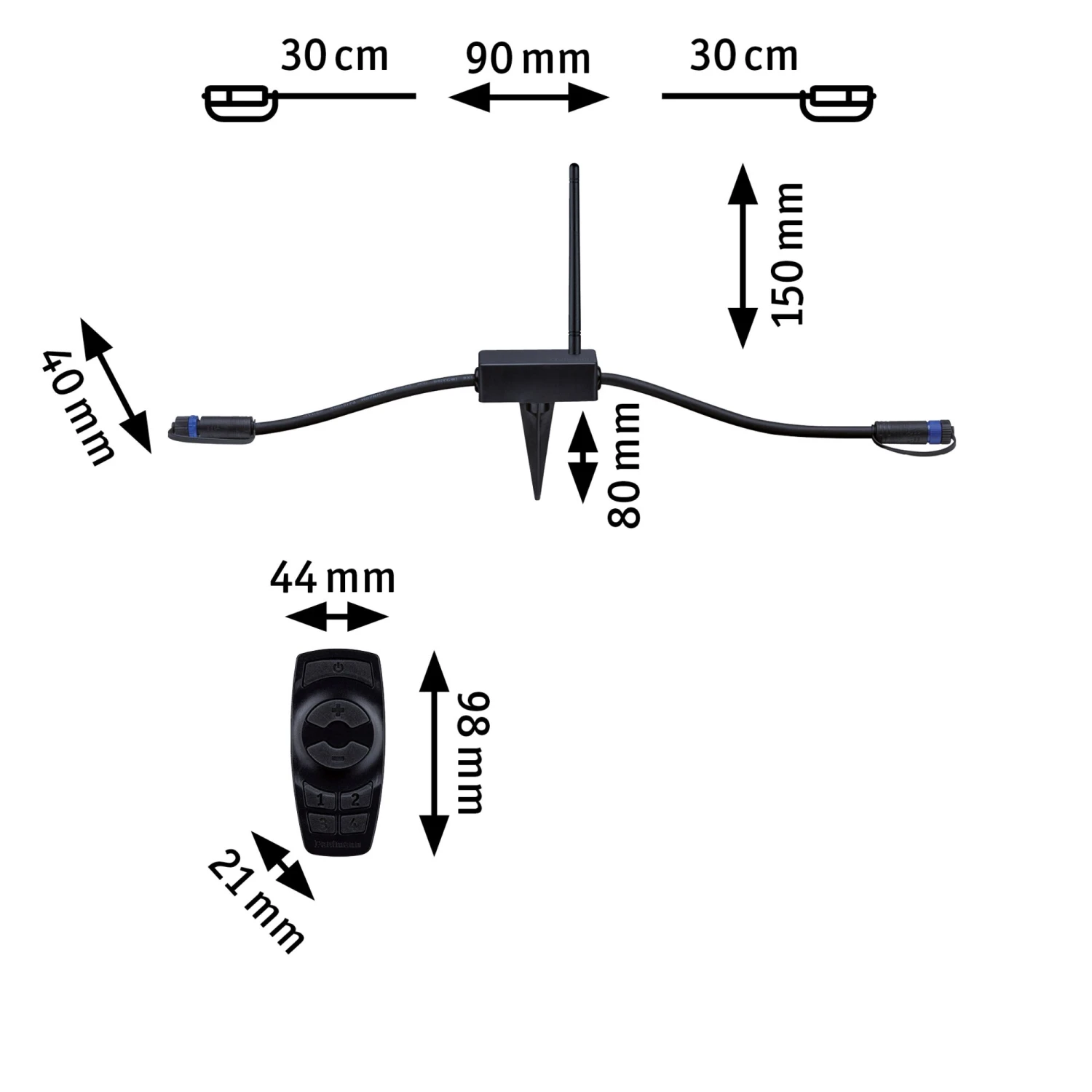Mit dem Plug & Shine Controller können 24 Volt-Lichtinstallationen im Außenbereich geschaltet und gedimmt werden. Über die mitgelieferte Fernbedienung lassen sich bei Bedarf auch mehrere Controller steuern. Dazu ist kein sichtbarer Kontakt zwischen Fernbedienung und Empfänger erforderlich. Reichweiten bis zu 15 Metern können problemlos überbrückt werden. Der Erdspieß dient zur optimalen Fixierung im Boden.