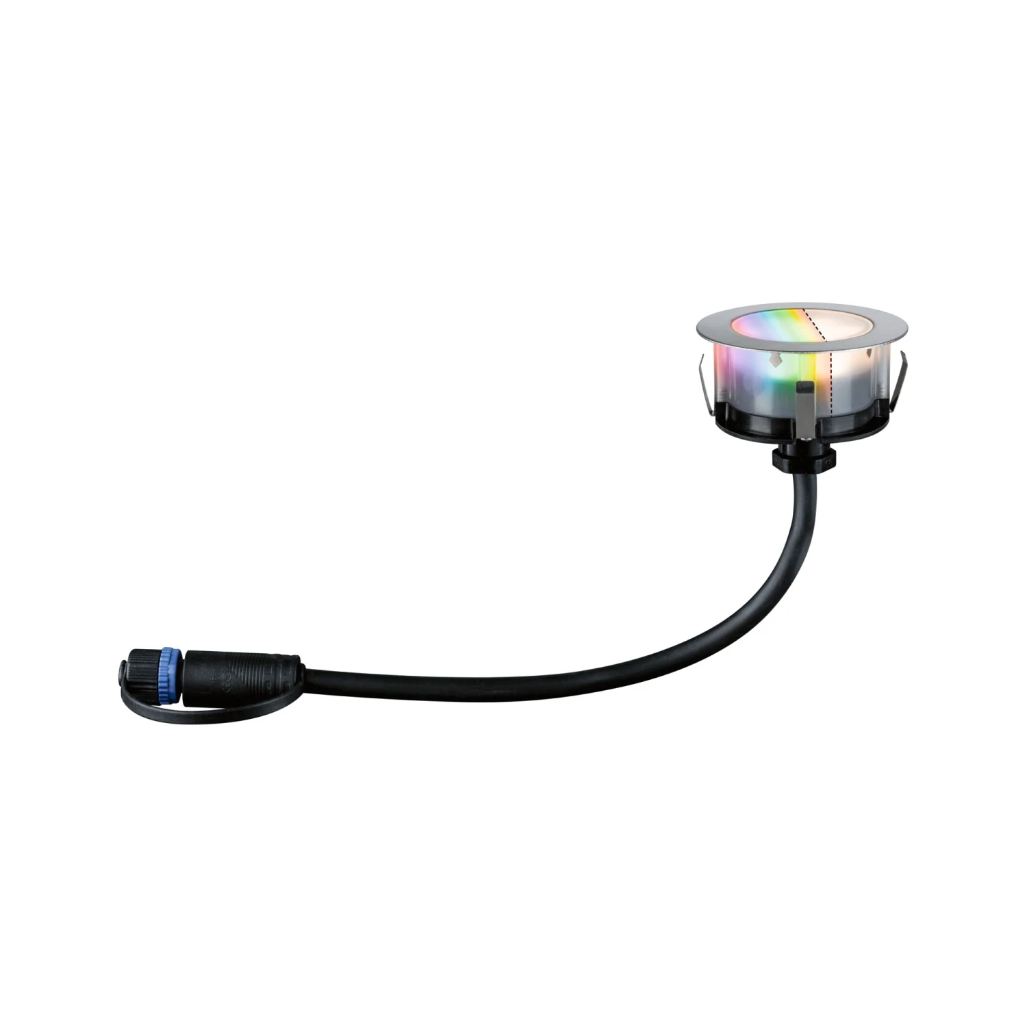 Der runde Plug & Shine Bodeneinbaustrahler Floor mit einem Durchmesser von 70mm sorgt fĂĽr dekorative Lichtpunkte an Weg- oder Terrassenbegrenzungen. Das fest verbaute LED-Modul liefert nach Wunsch buntes oder weiĂźes Licht. Farbeinstellungen lassen sich via Zigbee 3.0 vornehmen. Dadurch werden weitere Steuerelemente wie die Plug & Shine Controller ĂĽberflĂĽssig. Der Strahler eignet sich ideal fĂĽr den Einbau in Holz-Terrassen.