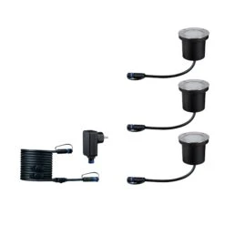 - Plug & Shine Basisset bestehend aus 3 Leuchten, 5 Meter Kabel mit 4 Ausgängen und Trafo