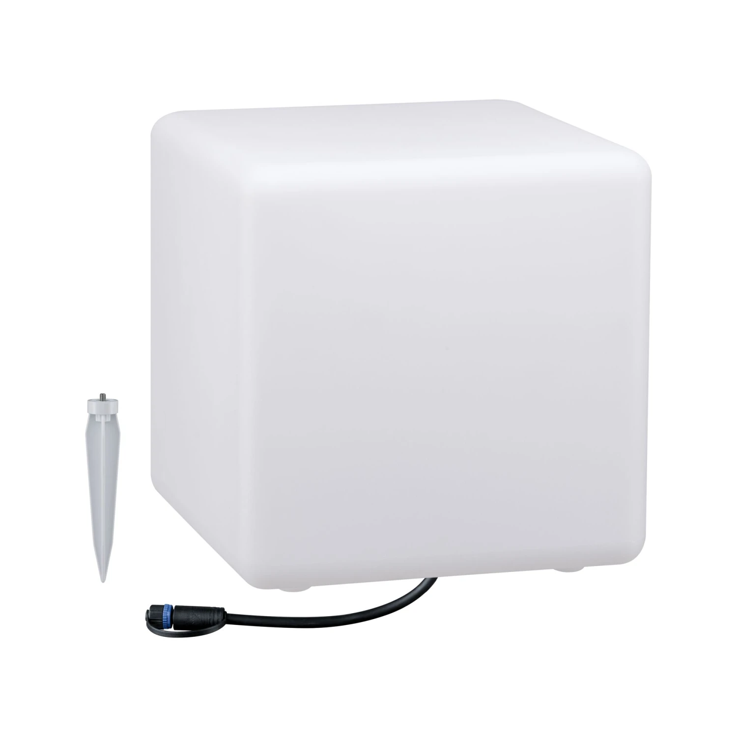 Der beleuchtete Würfel Plug & Shine Cube mit einer Kantenlänge von 30 Zentimetern ist ein dekorativer Hingucker in Blumenbeeten, auf der Terasse oder dem Balkon. Mit Trafos, Verbindern und weiteren Leuchten aus der Plug & Shine Serie können individuelle Lichtinstallationen für den Außenbereich zusammengestellt werden.