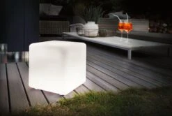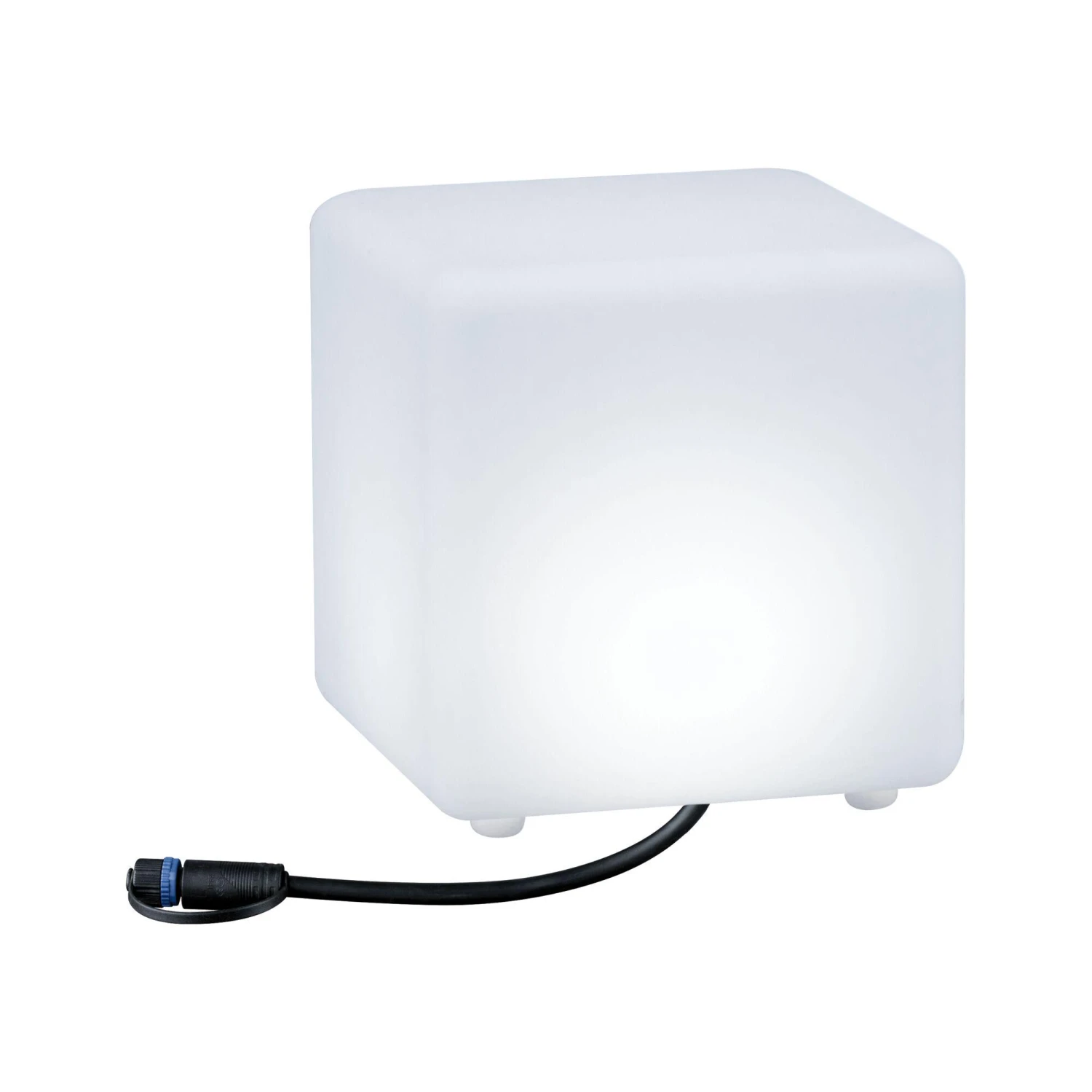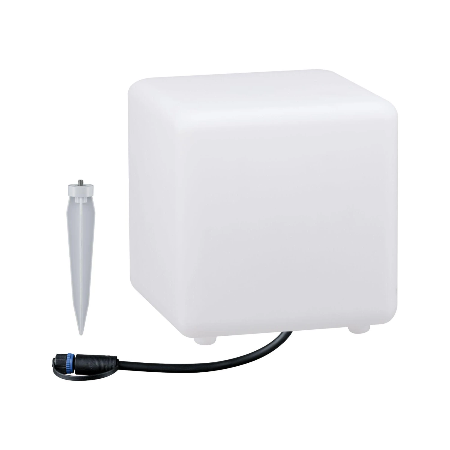 Das Smart Home Zigbee 3.0 Plug & Shine LED Lichtobjekt Cube mit einer Kantenlänge von 20 cm ist ein dekorativer Hingucker in Blumenbeeten, auf der Terrasse oder dem Balkon. Die fest verbauten LED Module liefern nach Wunsch buntes oder weißes Licht. Farbeinstellungen lassen sich ganz bequem via Zigbee 3.0 vornehmen. Dadurch werden weitere Steuerelemente wie die Plug & Shine Controller überflüssig.