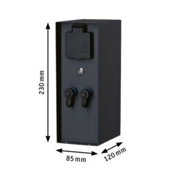 Die Plug & Shine Steckdosensäule Rio mit Dämmerungssensor dient als Stromverteiler für den Außenbereich. Dank IP44 Spritzwasserschutz und Schutzkontaktsteckdosen eignet sie sich perfekt zur Steuerung des Gartenlichts. Durch den integrierten Trafo kann das Plug & Shine System mit zwei Ausgängen direkt an der Steckdosensäule angeschlossen werden. Die beiden Plug & Shine Abgänge werden über den Dämmerungssensor geschaltet Für zusätzliche Aufgaben im Garten stehen zwei, vom Dämmerungssensor unabhängige, zusätzlichen 230V Steckdosen bereit.