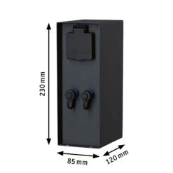 Die Plug & Shine Steckdosensäule Rio dient als Stromverteiler für den Außenbereich. Dank IP44 Spritzwasserschutz und Schutzkontaktsteckdosen eignet sie sich perfekt zur Stromversorgung des Gartenlichts. Durch den integrierten Trafo kann das Plug & Shine System mit zwei Ausgängen direkt an der Steckdosensäule angeschlossen werden. Für zusätzliche Aufgaben im Garten stehen zwei zusätzlichen 230V Steckdosen bereit.