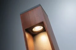 Die 60 cm hohe Pollerleuchte Trabia setzt mit ihrer modernen Holzoptik fantastische Lichteffekte. Sie vereint die Aspekte Funktionalität und Ästhetik miteinander und sorgt für ein angenehmes, gleichmäßiges Licht an Gehwegen, im Garten oder auf der Terrasse. Dank Spritzwasserschutz kann die Lampe im Außenbereich installiert werden.