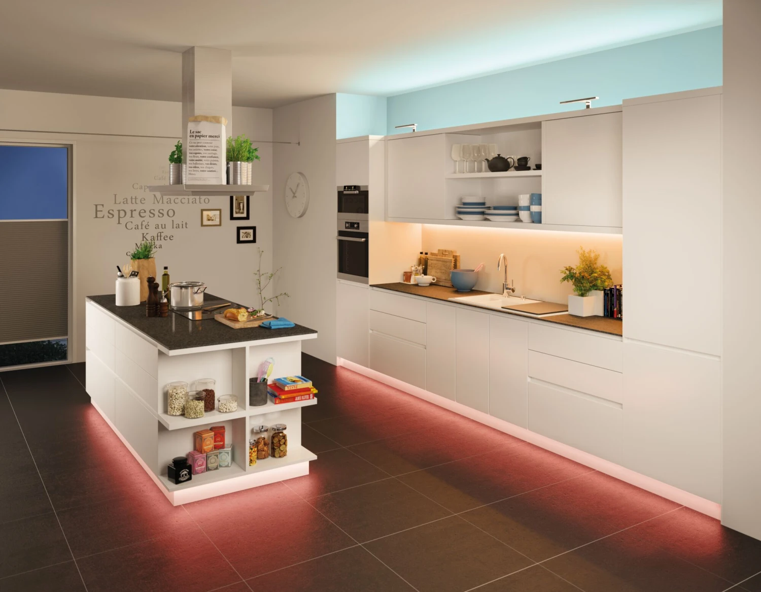 Reflex LED-Strips sind echte Hingucker und lassen sich flexibel an Möbeln anbringen oder in Profilen verlegen. Je nach Stimmung können Sie zwischen echtem Warmweiß, farbigem Licht und verschiedenen Effekten wählen. Die Leuchte ist Zigbee 3.0 kompatibel. Zigbee 3.0 ist ein Funkübertragungsprotokoll, das Geräte verschiedener Hersteller miteinander vernetzt. Einzelne Komponenten lassen sich gezielt ansprechen oder in Gruppen als Lichtszenen schalten.