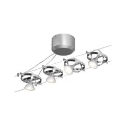 Egal ob gerade, schräg oder verwinkelt – Seilsysteme passen in jeden Raum. Die Serie Cardan kann sowohl an der Wand als auch an der Decke montiert werden und bietet dadurch grenzenlose Gestaltungsmöglichkeiten. Das Basisset lässt sich individuell durch Einzelspots, Umlenker und weiteres Zubehör ergänzen – bitte beachten Sie dabei die maximale Trafoauslastung.