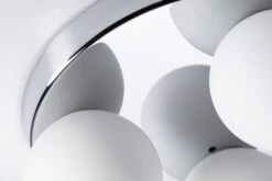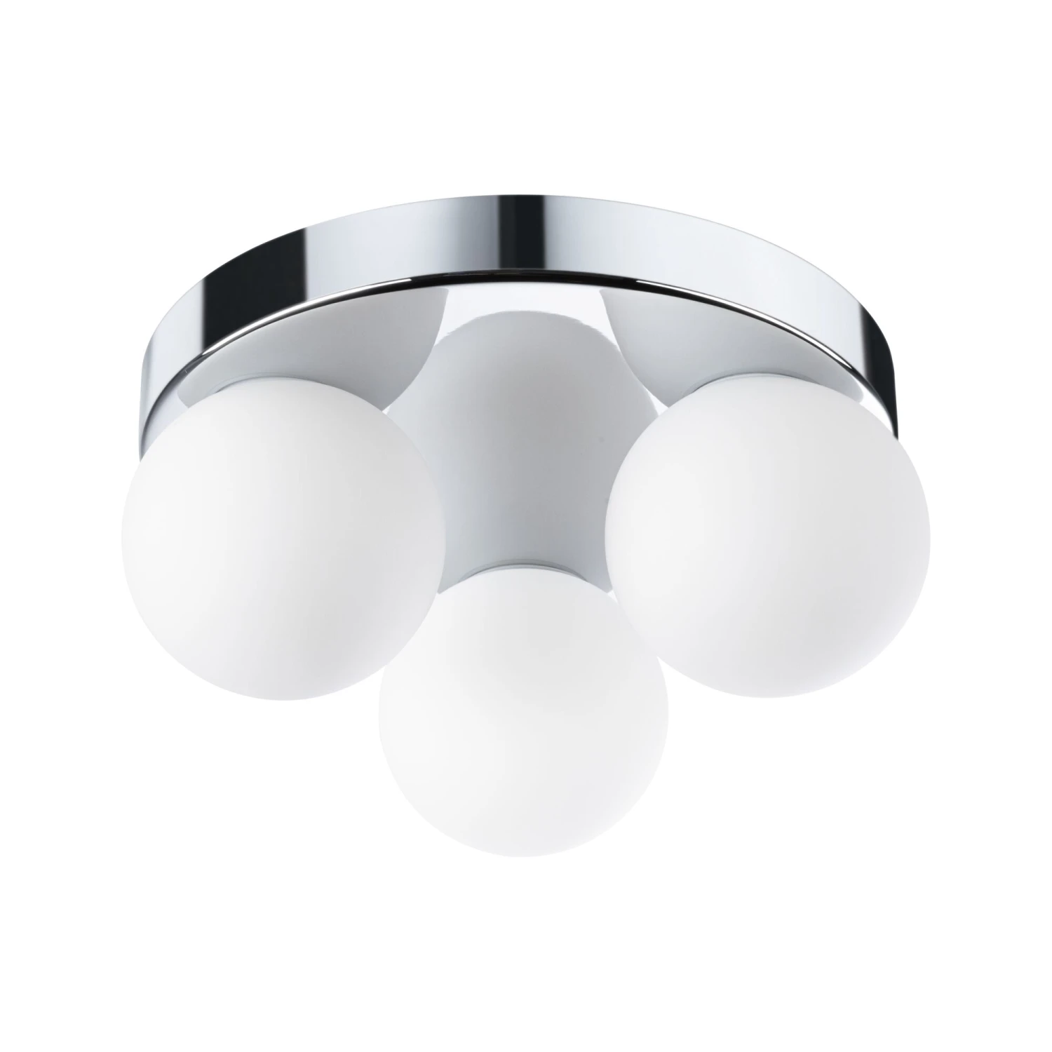 Die dreiflammige Deckenleuchte der Serie Gove sorgt mit ihrer zeitlosen, eleganten Kugelform in Chrom/Satin für ein perfektes Zusammenspiel von Licht und Design im Bad. Durch den speziellen Schutz gegen das Eindringen von Spritzwasser ist die Leuchte ideal für den Einsatz in Feuchträumen geeignet. Die Badleuchten der Serie Gove stehen für stilsichere Eleganz, in Kombination mit anderen Leuchten der Gove Serie entsteht ein harmonisches Lichtbild im Badezimmer. Es lassen sich beliebige Leuchtmittel mit G9-Sockel und einer Leistung von max. 20W einsetzen.