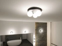 Die dreiflammige Deckenleuchte der Serie Gove sorgt mit ihrer zeitlosen, eleganten Kugelform in Schwarz matt/Satin für ein perfektes Zusammenspiel von Licht und Design im Bad. Durch den speziellen Schutz gegen das Eindringen von Spritzwasser ist die Leuchte ideal für den Einsatz in Feuchträumen geeignet. Die Badleuchten der Serie Gove stehen für stilsichere Eleganz, in Kombination mit anderen Leuchten der Gove Serie entsteht ein harmonisches Lichtbild im Badezimmer. Es lassen sich beliebige Leuchtmittel mit G9-Sockel und einer Leistung von max. 20W einsetzen.
