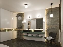 Die Deckenleuchte der Serie Gove sorgt mit ihrer zeitlosen, eleganten Kugelform im modernen Schwarz für ein perfektes Zusammenspiel von Licht und Design im Bad. Durch den speziellen Schutz gegen das Eindringen von Spritzwasser ist die Leuchte ideal für den Einsatz in Feuchträumen geeignet. Die Badleuchten der Serie Gove stehen für stilsichere Eleganz, gepaart mit modernster und energiesparender LED Technik. In Kombination mit anderen Leuchten der Gove Serie entsteht ein harmonisches Lichtbild im Badezimmer.