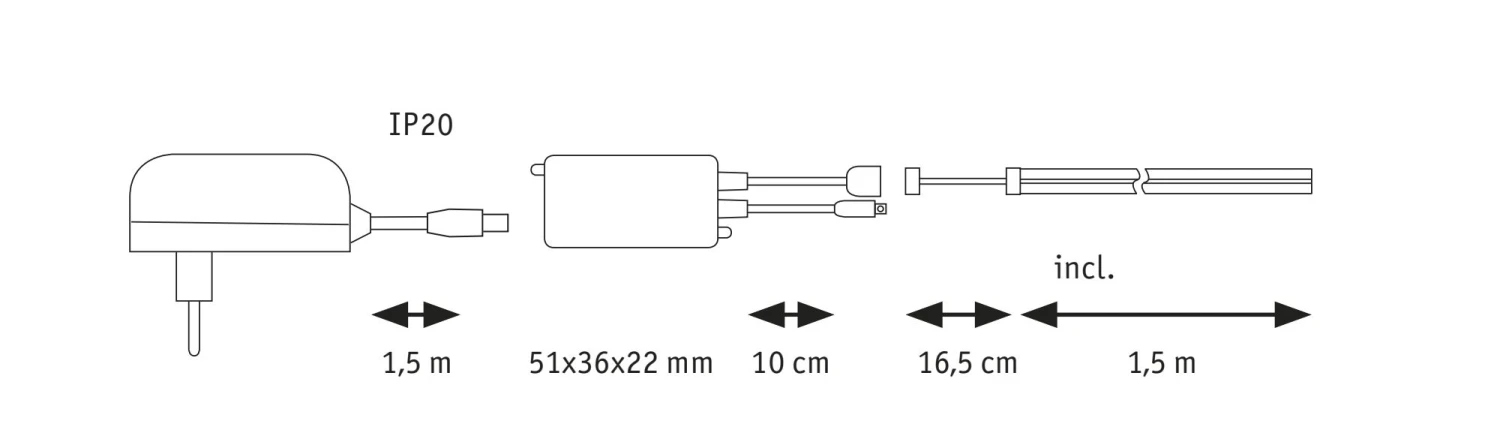 - Betriebsfertiges Set inklusive 230/12V Power Supply mit Zuleitung und Netzstecker