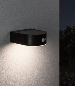 Die warmweiße Solarwandleuchte Eileen mit 400lm verbreitet angenehm flächiges Licht an Hauswänden und Eingangsbereichen. Dank praktischer Solartechnik kann sie unabhängig vom Stromanschluss platziert werden. Tagsüber wird der Akku durch das Sonnenlicht aufgeladen und dank des integrierten Bewegungsmelder in der Dunkelheit automatisch eingeschaltet, sobald sich jemand nähert. Solartechnik ist besonders umweltschonende und eine sparsame Alternative.
