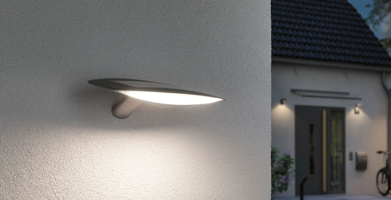 Die Solar Wandleuchte Kiran in Grau und 180 lm bringt Licht an die Außenwände. Dank praktischer Solartechnik, ist ein Stromanschluss für die Montage nicht notwendig. Der austauschbare Lithium-Ionen-Akku wird tagsüber durch Sonnenlicht aufgeladen und der Bewegungsmelder sorgt dafür, dass das Licht bei Dunkelheit automatisch angeht, sobald sich jemand annähern. Die Leuchte ist durch ihren IP44-Schutz speziell gegen das Eindringen von Feuchtigkeit und Staub geschützt.