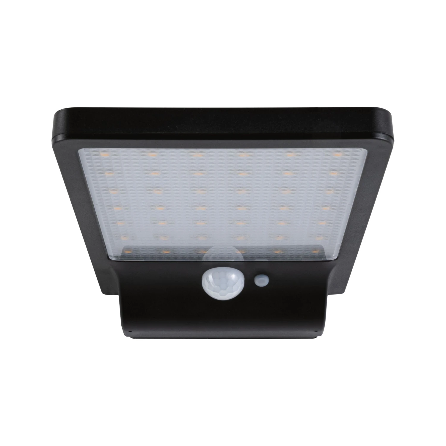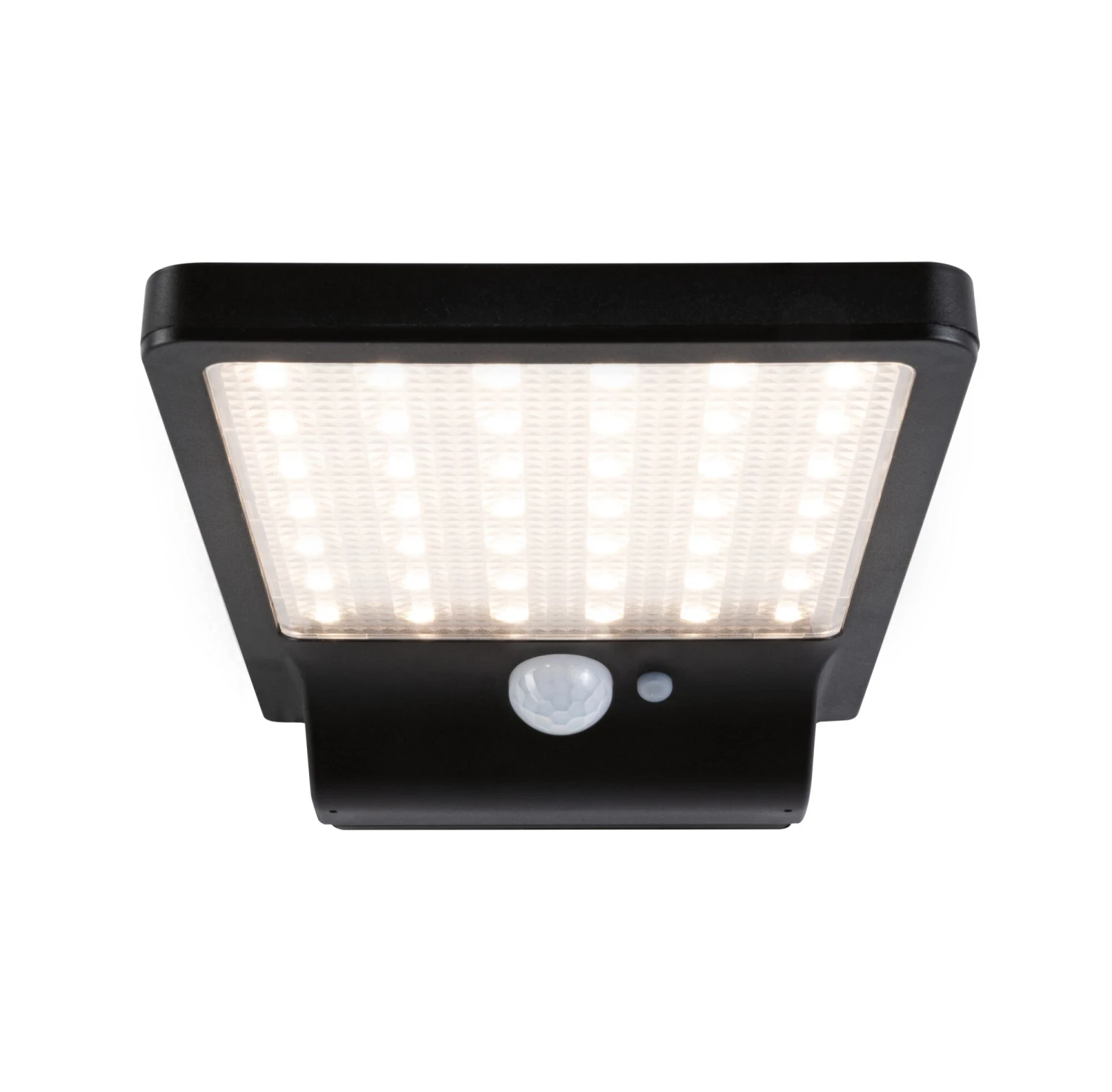 Die Solar-Wandleuchte Solveig in Schwarz und 338 lm bringt Licht an die Außenwände und leuchtet den Bereich vor der Haustür aus. Dank praktischer Solartechnik, ist ein Stromanschluss für die Montage nicht notwendig. Tagsüber wird der Akku durch das Sonnenlicht aufgeladen und in der Dämmerung leuchtet ein kleines Orientierungslicht, das von einem Funktionslicht abgelöst wird, sobald sich jemand nähert. Die Leuchte ist durch ihren IP44-Schutz speziell gegen das Eindringen von Feuchtigkeit und Staub geschützt.