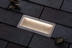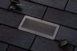 Leuchtende Pflastersteine ganz ohne Kabel: Die Solar-Bodeneinbauleuchte Aron in den Abmessungen 20×10 cm, lässt sich ganz unabhängig vom Stromanschluss verlegen. Tagsüber werden die Akkus durch Sonnenlicht aufgeladen und in der Dämmerung leuchtet ein Orientierungslicht das zum Funktionslicht wird, wenn der Bewegungsmelder Personen in der Nähe wahrnimmt. Da die Solarzellen etwas zurückgesetzt liegen, sind sie nahezu unsichtbar und man nimmt nur eine gleichmäßig leuchtende Fläche wahr. Die Bodeneinbauleuchte ist dank Schutzart IP67 garantiert wasserdicht, rostfrei und für den Einbau in begehbaren Außenbereichen geeignet – bis zu 500kg Gewicht steckt die Leuchte locker weg.