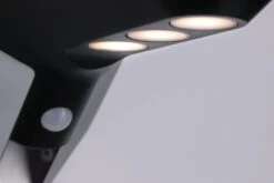 Die Solarleuchte Soley in Anthrazit bringt Licht an Ihre Außenwände. Dank praktischer Solartechnik, ist ein Stromanschluss für die Montage nicht notwendig. Tagsüber wird der Akku durch Sonnenlicht aufgeladen und in der Dämmerung leuchtet ein kleines Orientierungslicht, das von einem Funktionslicht abgelöst wird, sobald sich Jemand nähert. Mit einem separat erhältlichen Aufsatz kann sie auch als Hausnummernleuchte genutzt werden.