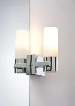 Kubische Grundformen und eine massive Halterung verleihen der Wand- und Spiegelleuchte Gemini einen unverwechselbaren Charakter. Im 2er Pack sind eine rechte und linke Spiegelleuchte enthalten. Durch Spritzwasserschutz für den Einsatz im Badezimmer oder Feuchtraum geeignet. Betrieb mit Energiesparlampen möglich.